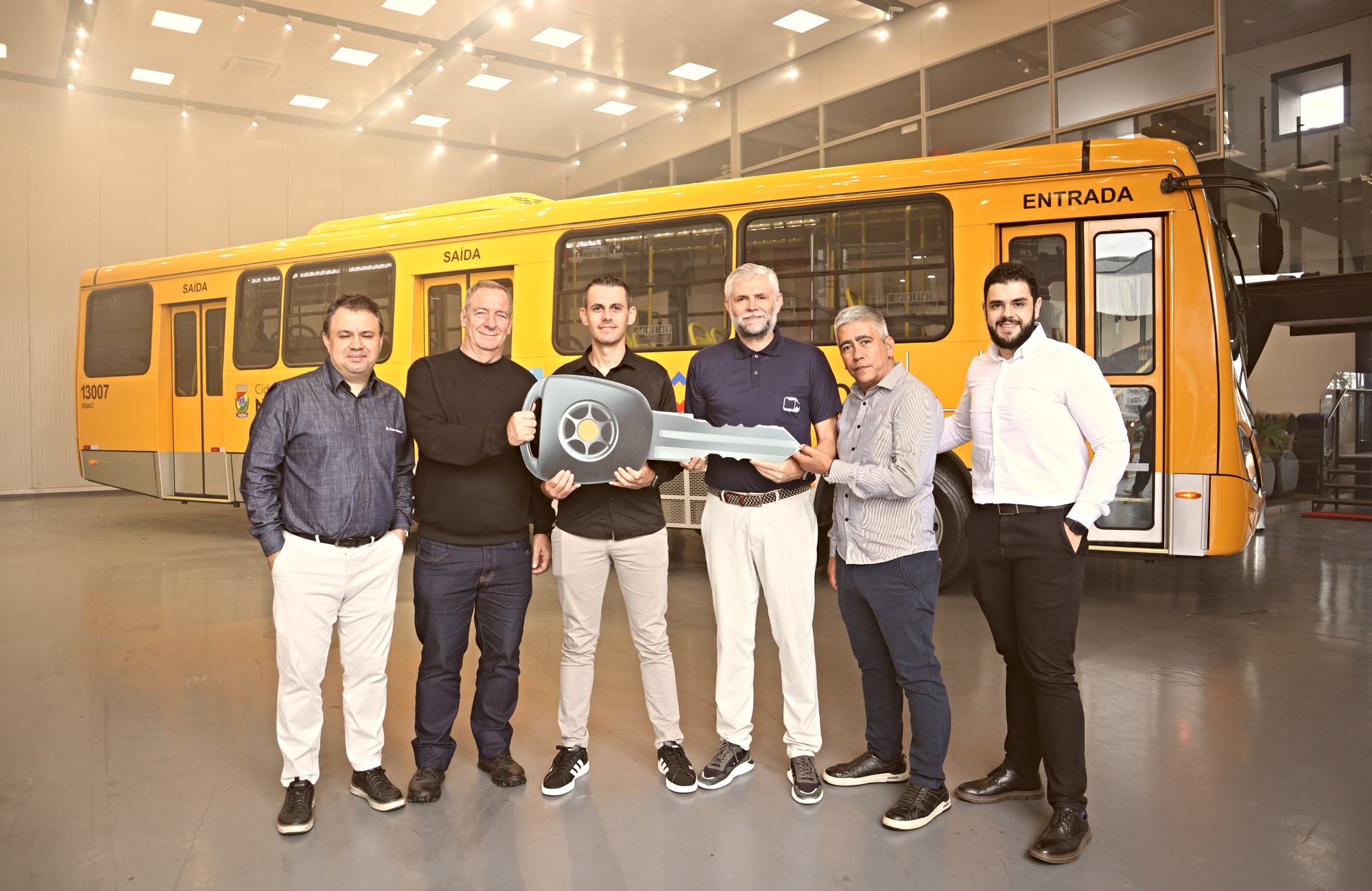 A frota do transporte coletivo de Novo Hamburgo será ampliada com a chegada de cinco ônibus zero quilômetro, previstos para entrar em circulação ainda no mês de maio. Os veículos foram apresentados nesta sexta-feira (24), na matriz da Marcopolo S.A., em Caxias do Sul, durante visita de representantes da Prefeitura e da concessionária responsável pelo serviço na cidade, a Viação Santa Clara (Visac-RS). O investimento de R$ 4 milhões foi custeado pela empresa e integra o processo de renovação da frota municipal.