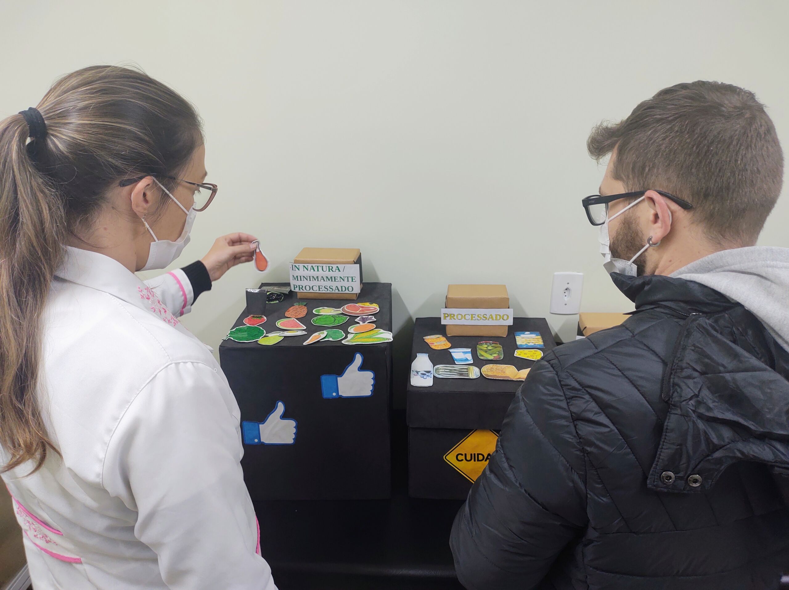 A nutricionista explica as três classificações alimentares por meio de uma dinâmica de consultório. Por meio dessa atividade, o usuário dos serviços SUS tem uma percepção melhor entre as opções disponíveis no mercado. Alimentos in natura ou minimamente processados ganham sinal verde como base da dieta; processados são colocados em sinal de alerta amarelo pela indicação de consumo limitado, em pequenas quantidades, e ultraprocessados têm sinal vermelho, devendo ser evitados, pois são ricos em sal, açúcar, gorduras e substâncias de uso exclusivo da indústria alimentícia.