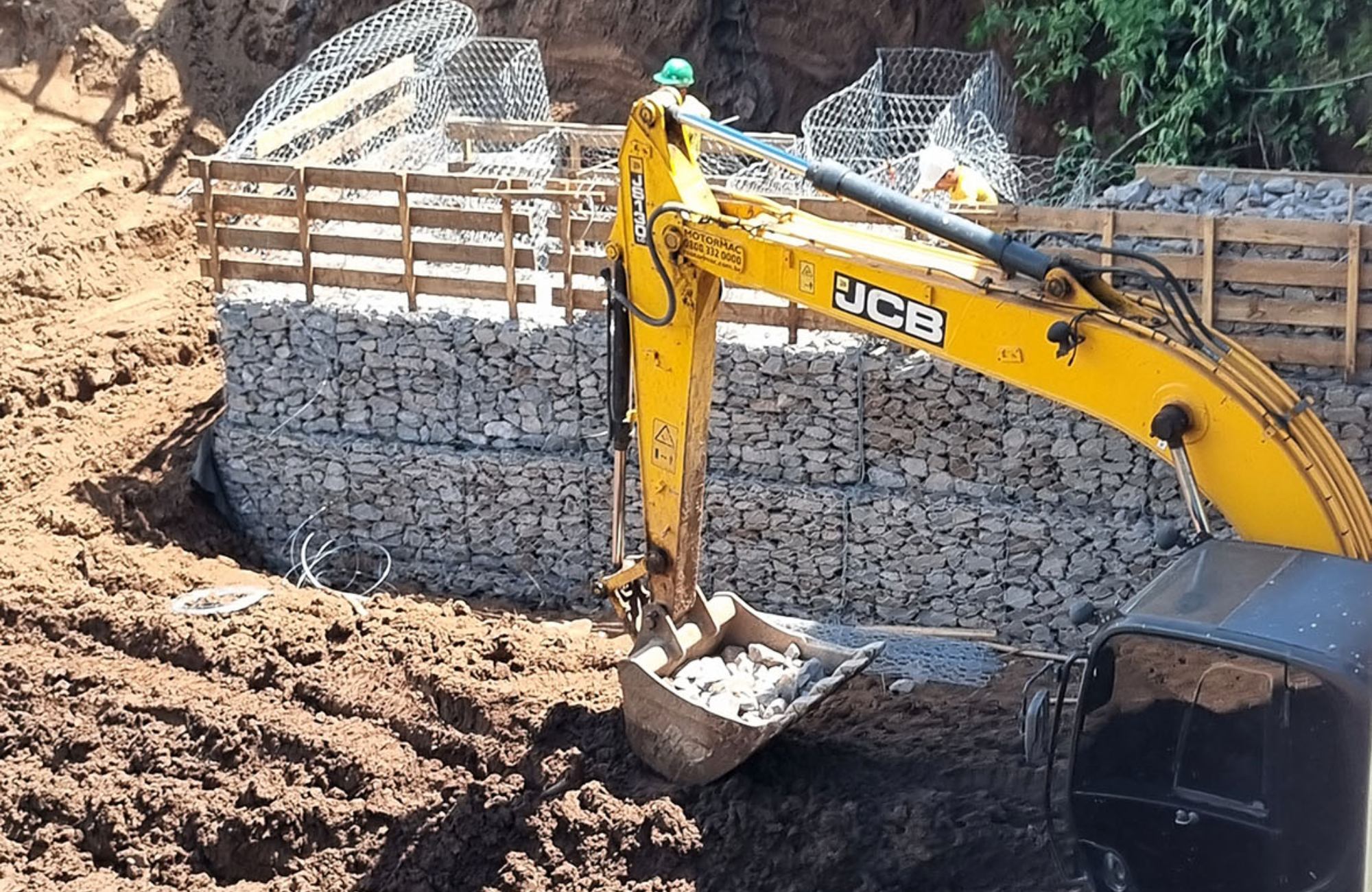 Obra de contenção com gabiões avança em São José do Hortêncio