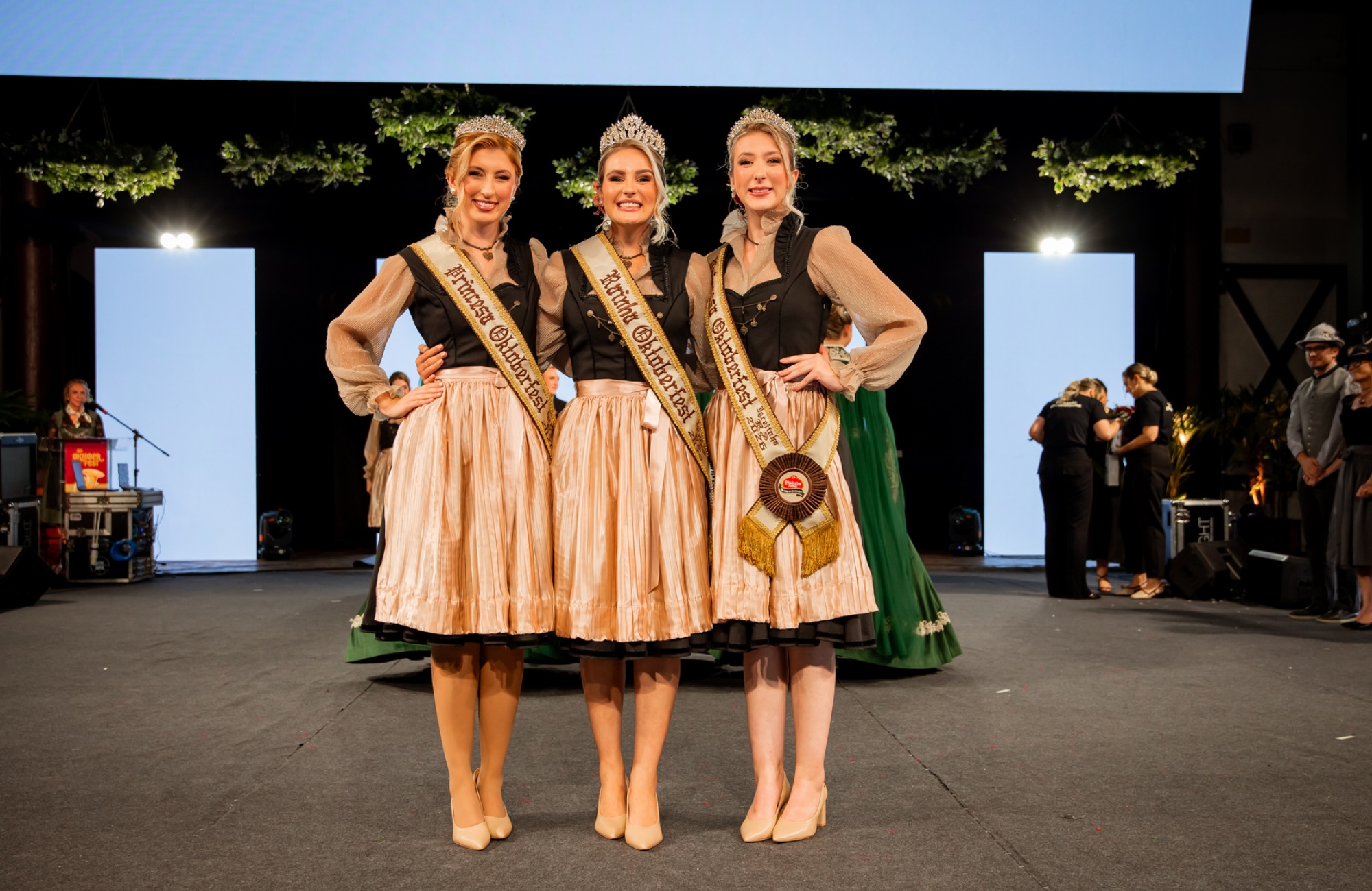 A nova corte recebeu as coroas e faixas das representantes da edição anterior: a rainha Isadora Schilling Lauck e as princesas Isadora Celine Roth e Andressa Knobloch Boff, em um momento marcado pela emoção e simbolismo da sucessão.