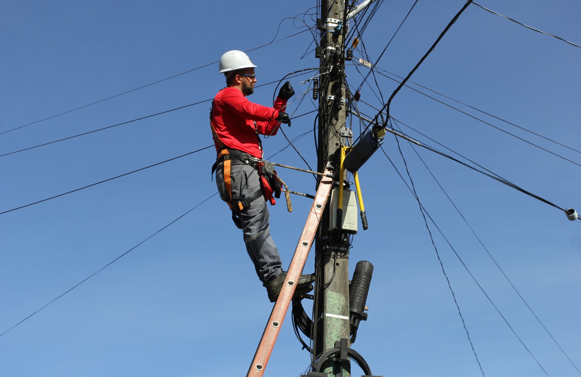 A terceira etapa da Operação Poste Limpo, realizada nesta terça-feira (15), retirou 1,5 tonelada de fios inativos dos postes da Avenida Júlio de Castilhos, em Canela. A ação é promovida pela Prefeitura do município, por meio da Secretaria de Trânsito e Fiscalização, em parceria com a RGE e operadoras de internet que atuam na região.