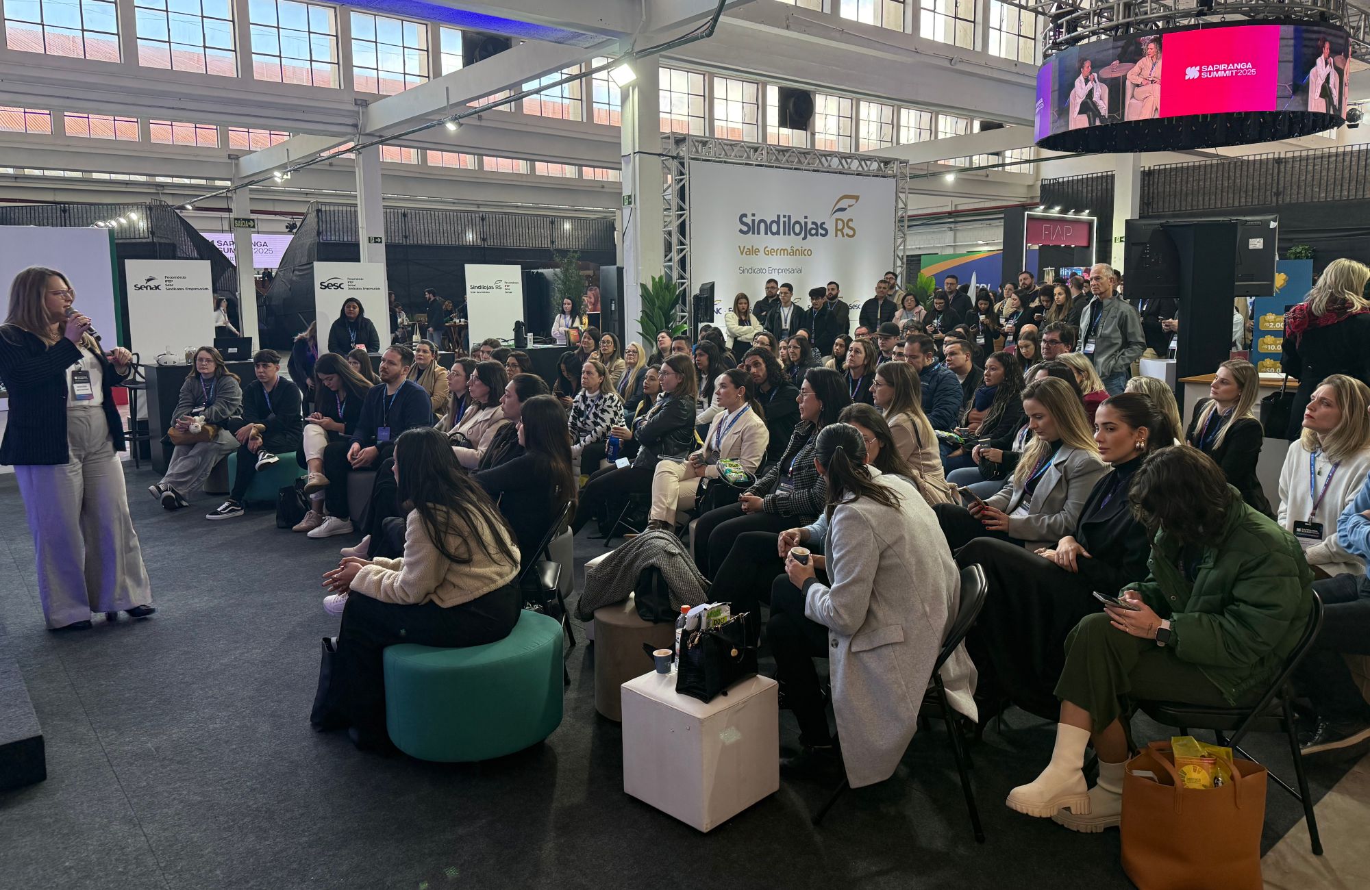 O Palco Sindilojas Vale Germânico e Fecomércio-RS chamou a atenção do público no primeiro dia do Sapiranga Summit 2025, realizado nesta quinta-feira (14) em Sapiranga. Com participação do Sesc e do Senac, o espaço apresentou palestras e serviços voltados a empresários e empreendedores, com programação variada ao longo do dia.