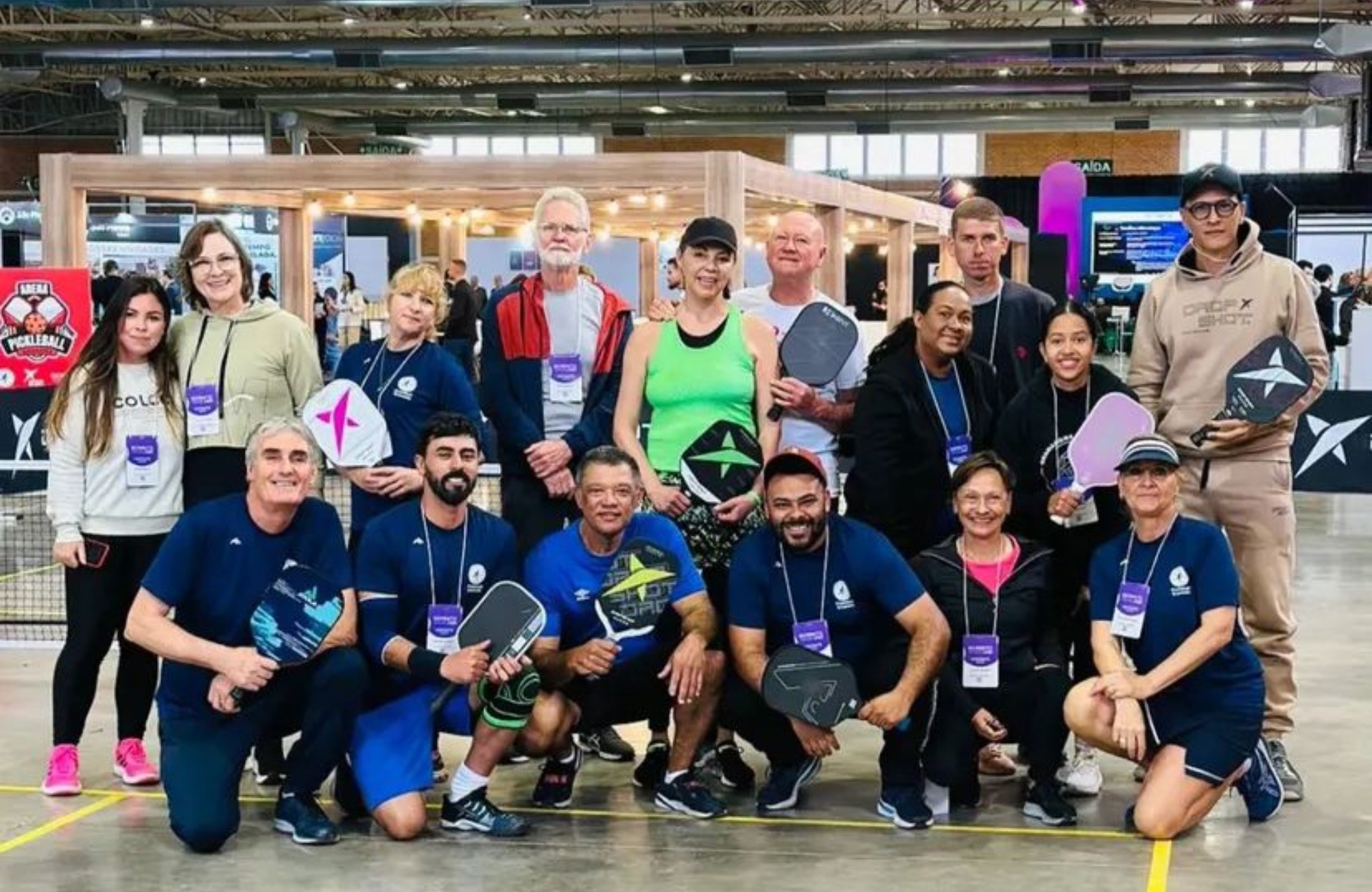 O grupo Pickleball Gramado apresentou nesta semana, durante a Geronto Fair, no Centro de Eventos do Serra Park, uma clínica sobre a modalidade esportiva que combina elementos do tênis, badminton e tênis de mesa. A feira, que ocorre até sexta-feira, 5 de setembro, em Gramado, é voltada à chamada Economia Prateada, reunindo soluções, produtos e serviços para pessoas com mais de 50 anos.
