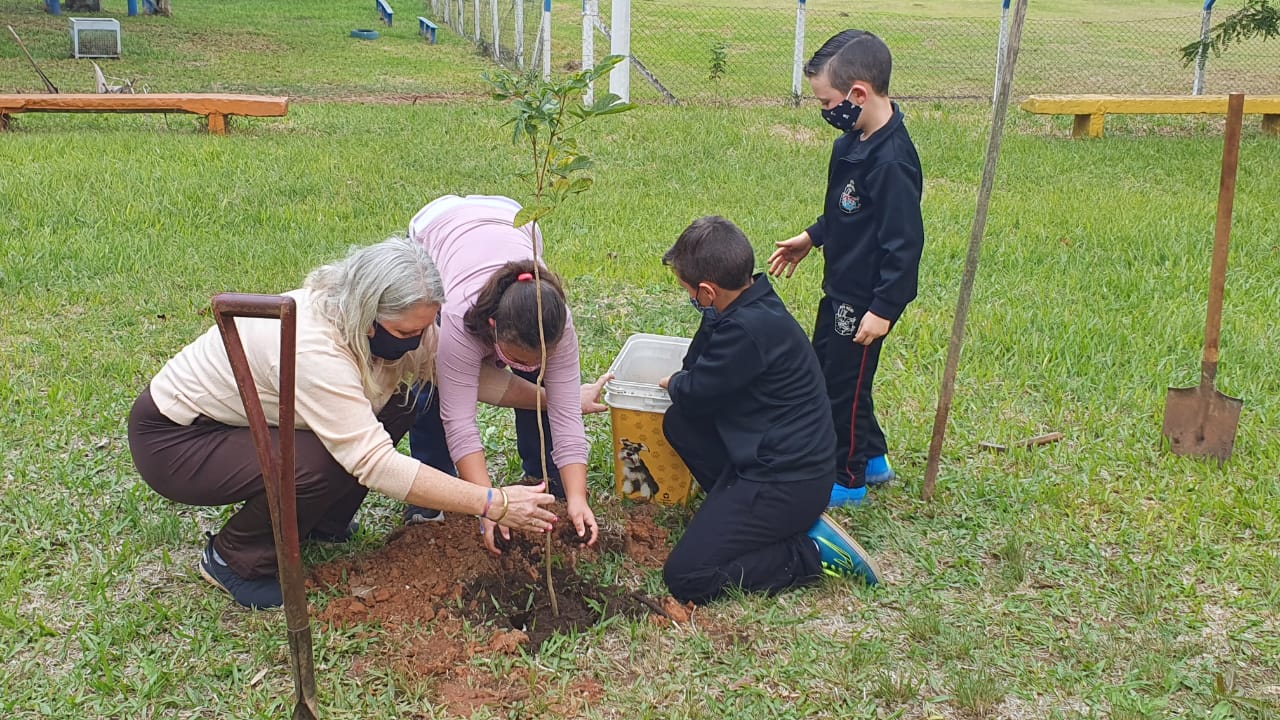 “Quando a natureza está em desequilíbrio, nós também sofremos. Esse plantio coloca os alunos em contato, mostrando que eles estão juntos nesse processo”, explica. Participaram os alunos Nicole dos Santos Reis, Bento e Theo de Oliveira.
