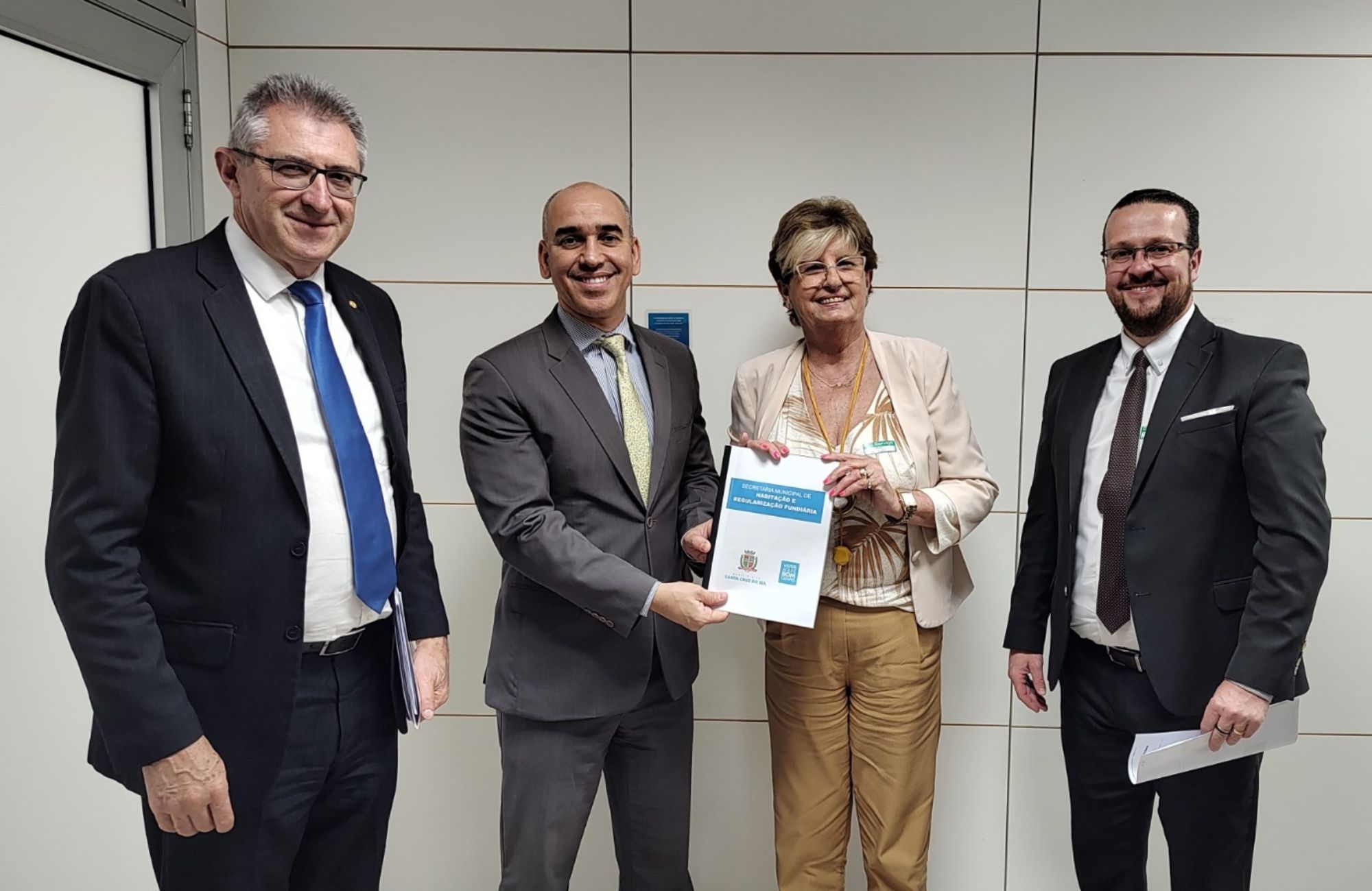 A construção de um novo loteamento habitacional em Santa Cruz do Sul teve mais uma etapa para a sua concretização realizada na manhã de terça-feira (22). A prefeita Helena Hermany e o secretário de Habitação e Regularização Fundiária, Fabiano Dupont, participaram de audiência com o secretário Nacional de Habitação, Hailton Madureira.