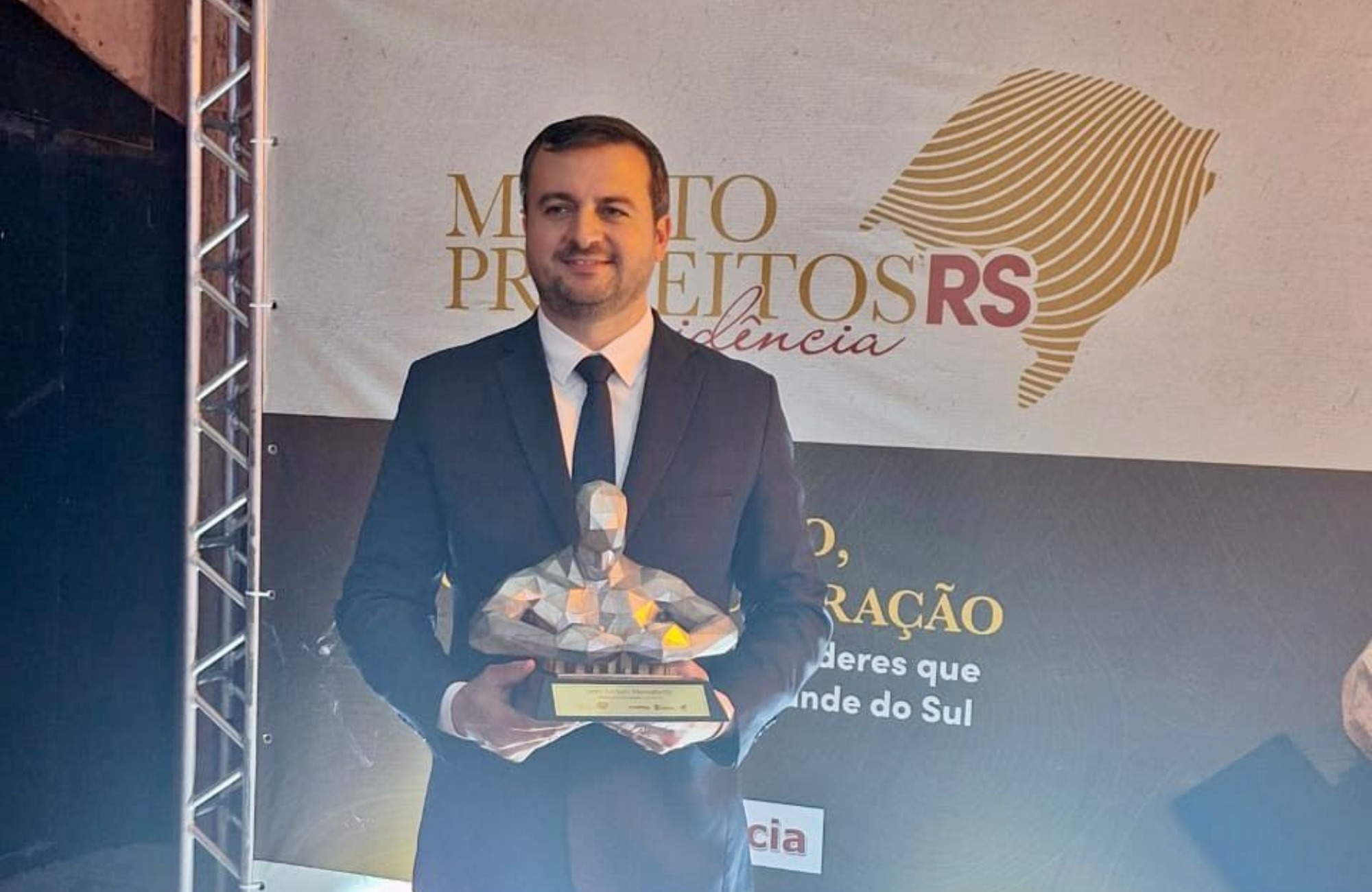 O prefeito de Dois Irmãos, Jerri Meneghetti (PP), recebeu o Troféu Mérito Prefeitos Em Evidência, em cerimônia realizada no Instituto Caldeira, em Porto Alegre, na noite desta sexta-feira (12). A premiação reconhece gestores municipais do Rio Grande do Sul que se destacam por administrações consideradas inovadoras, transparentes e orientadas para resultados.