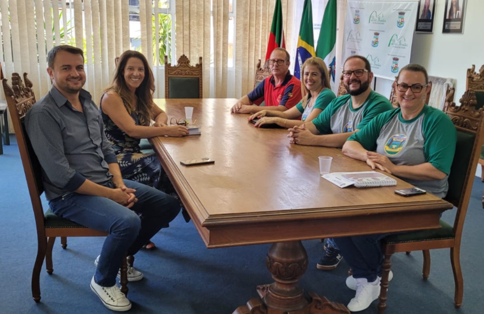 Na manhã da última quarta-feira (25), membros da diretora da ACTG Portal da Serra estiveram reunidos com o prefeito Jerri Menegheti e a chefe do Departamento de Cultura, Elisandra Silva, para definir ações e pautas da entidade para 2023. O prefeito aproveitou o momento para parabenizar a entidade pela escolha da Cristiane Frühling Wagner como patrona, primeira mulher à frente da entidade. Cristiane disse que a mulher tem um olhar diferenciado e muito a contribuir. Elisandra também se colocou à disposição da entidade para que o ano seja intenso de atividades culturais e tradicionalistas para a comunidade dois-irmonense. Na ocasião, foi abordado também sobre o termo de fomento e a revitalização do prédio da ACTG. Participam também do encontro, da entidade: Diego Joel Schuh, Capataz Cultural, Eveline Kaster Portelinha, Capataz Artística, e Neri Cezar Welter, Diretor Conselho Fiscal. “Muito importante ver mulheres se apropriando destes espaços”, disse o prefeito.