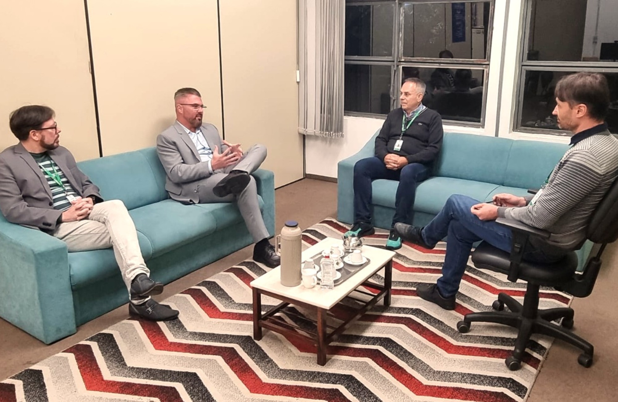 O prefeito de Novo Hamburgo, Gustavo Finck (PP), se reuniu na sexta-feira (23) com a direção da Fundação Liberato Salzano Vieira da Cunha para tratar da ampliação do diálogo entre o poder público e o setor empresarial local. O encontro ocorreu na sede da escola técnica, com a presença do diretor-executivo da instituição, José de Souza, do secretário-executivo, Josimar Dias da Silva, e do coordenador da Mostratec-Liberato, Luis Eduardo Selbach.