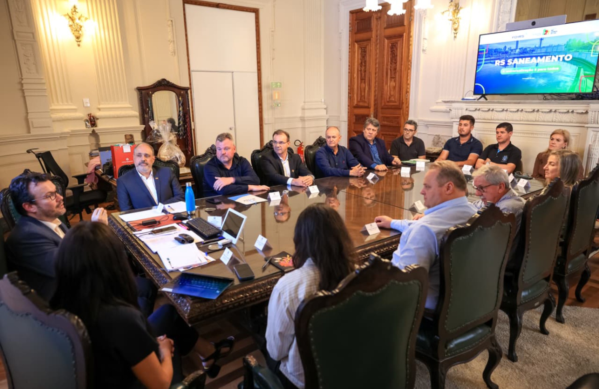 Prefeito de Picada Café debate metas do Marco do Saneamento em reunião no Piratini