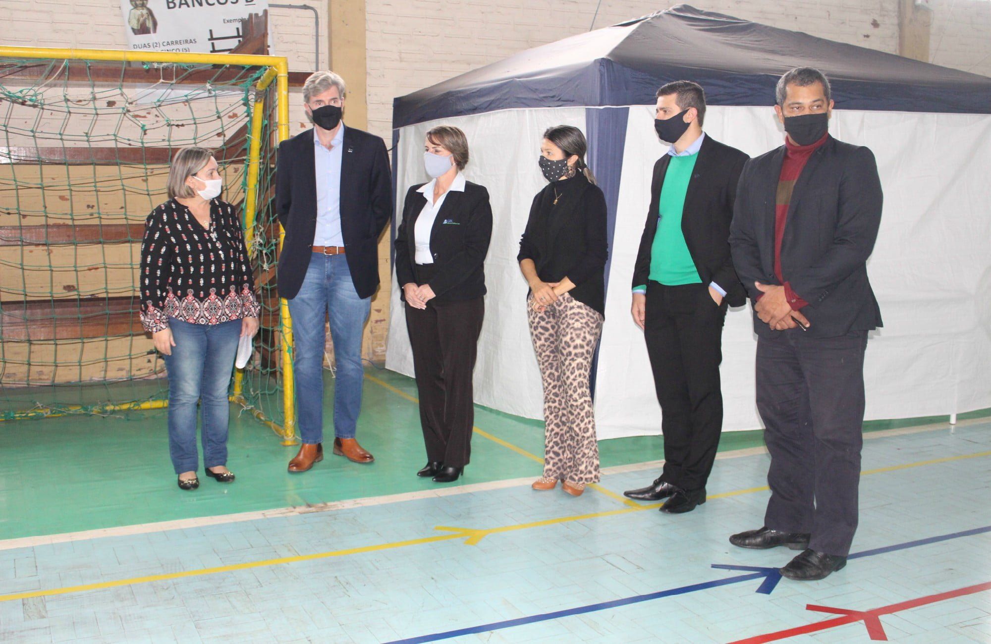 A prefeita Ivete Grade convidou os visitantes para conhecer o Centro de Monitoramento e Combate da Covid-19. Com ela estavam a chefe de gabinete e chefe de departamento da Indústria, Comércio e Turismo, Juliana Moura; coordenador executivo do Procon, Flávio Reis dos Santos; vice-presidente de governança e qualidade da ACI, Diogo Leuck; vice-presidente da regional Estância Velha da ACI, Leandro Kolling e gestora da CDL, Sandra de Oliveira.