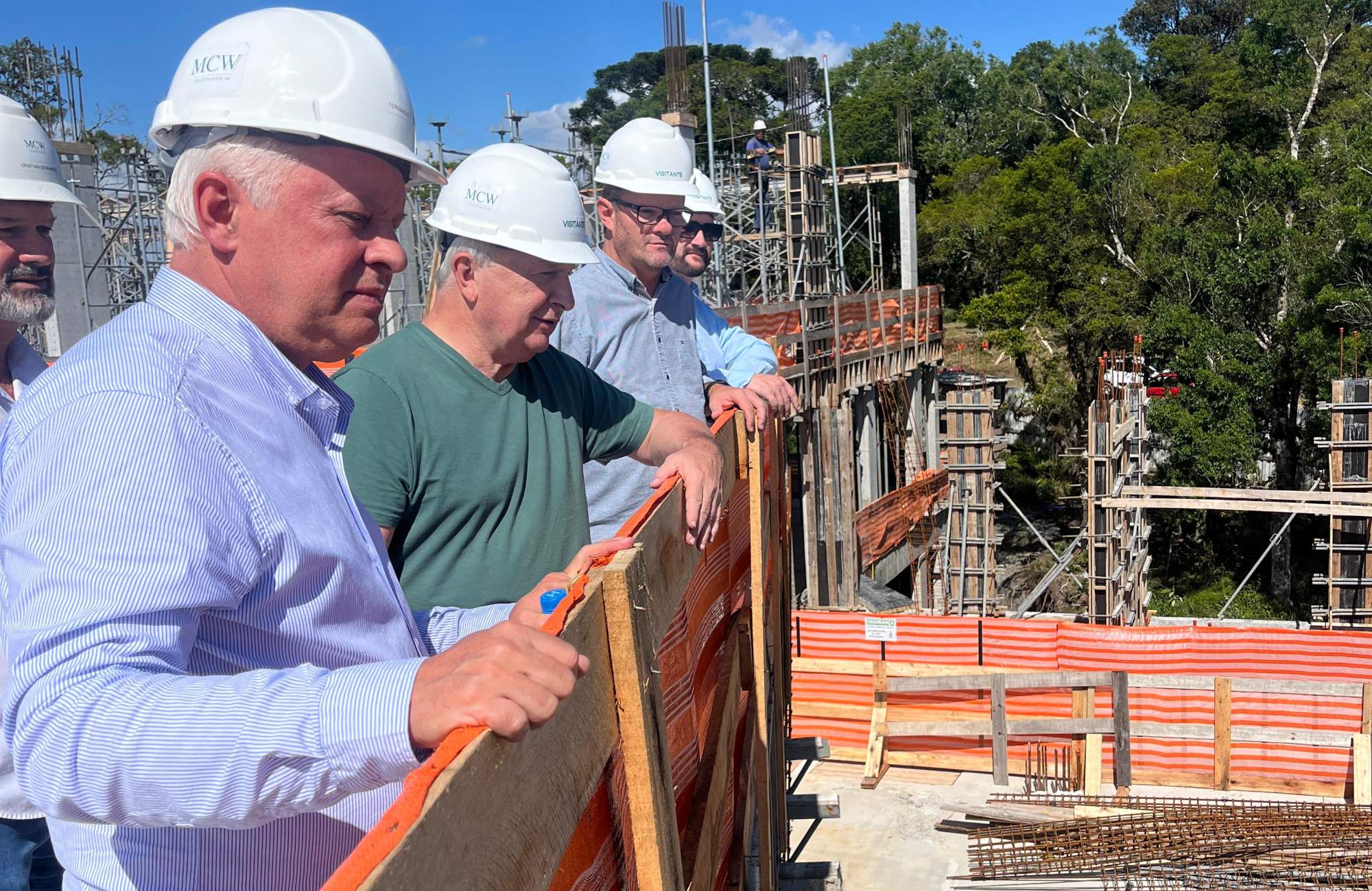 O vice-prefeito de Gramado, Luia Barbacovi, e o chefe de Gabinete da Prefeitura de Gramado, Rafael Ronsoni, realizaram na última semana uma visita técnica às obras do complexo de saúde Serra Life, em Canela. No local, as autoridades foram recebidas pelo empresário e diretor da Novalternativa Incorporadora, Fernando Bassani, para acompanhar o andamento do prédio Pompéia Pryme, que integrará a estrutura hospitalar do projeto.