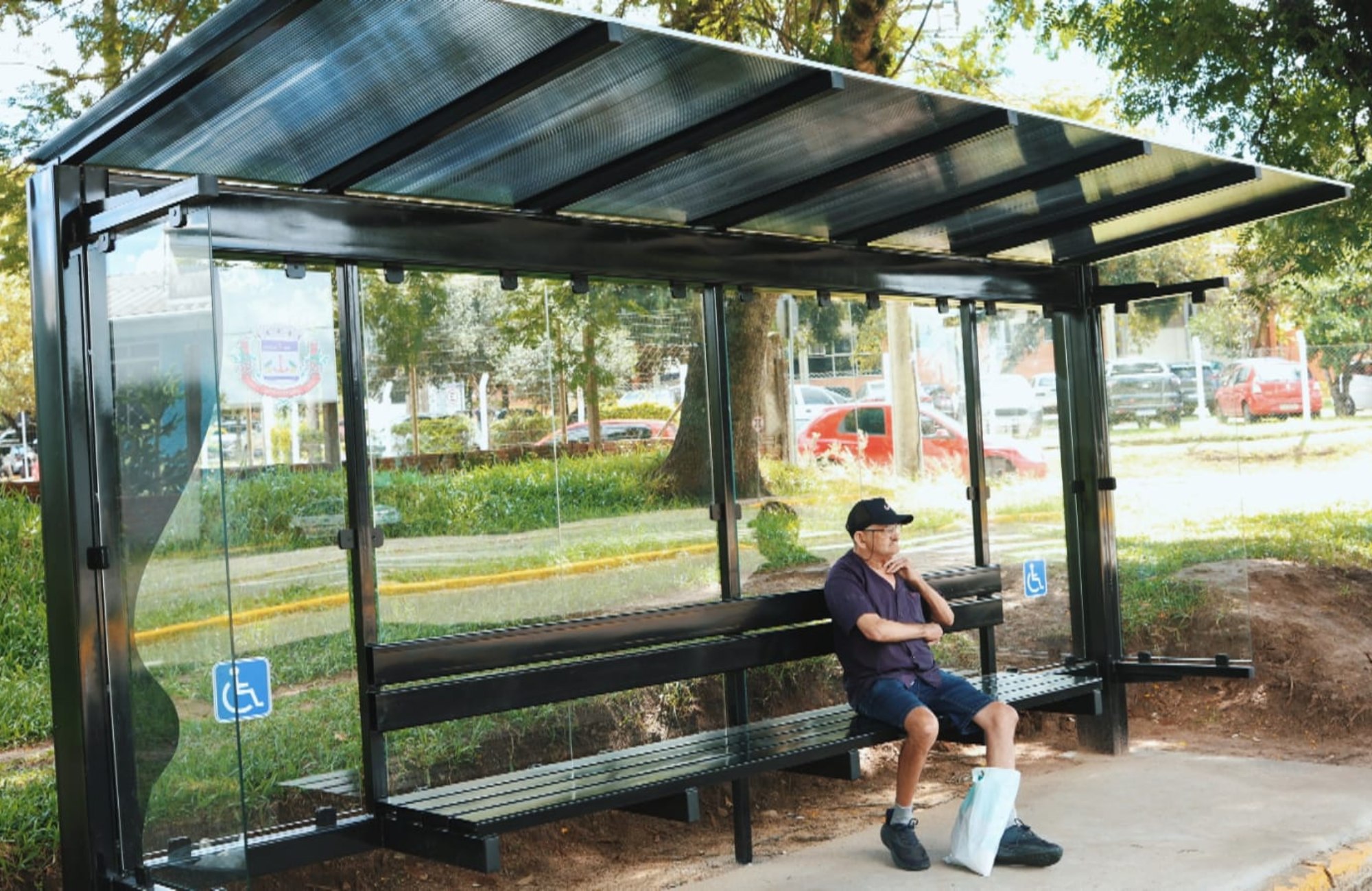 Os novos abrigos são feitos de ferro, com cobertura e proteções laterais em acrílico, projetados para oferecer maior proteção contra chuva e vento. Cada unidade possui cinco metros de extensão e custo de R$ 18.217,60.