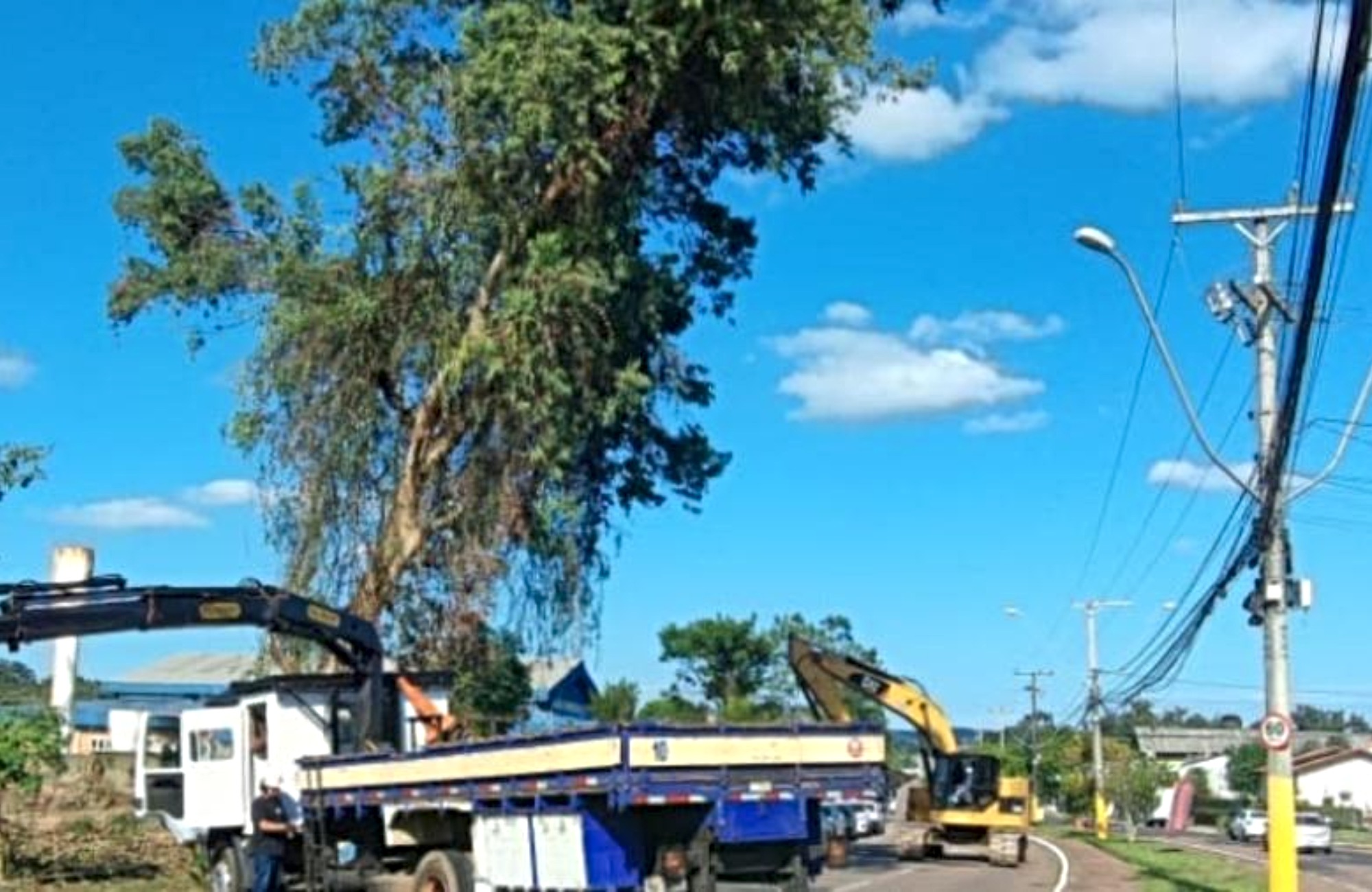 A Secretaria Municipal de Mobilidade e Serviços Urbanos (Semurb) deslocou uma equipe para realizar a supressão. A concessionária RGE prestou apoio técnico durante a operação, e a Guarda Civil Municipal isolou a área e organizou o desvio do trânsito para garantir a segurança dos motoristas e pedestres.
