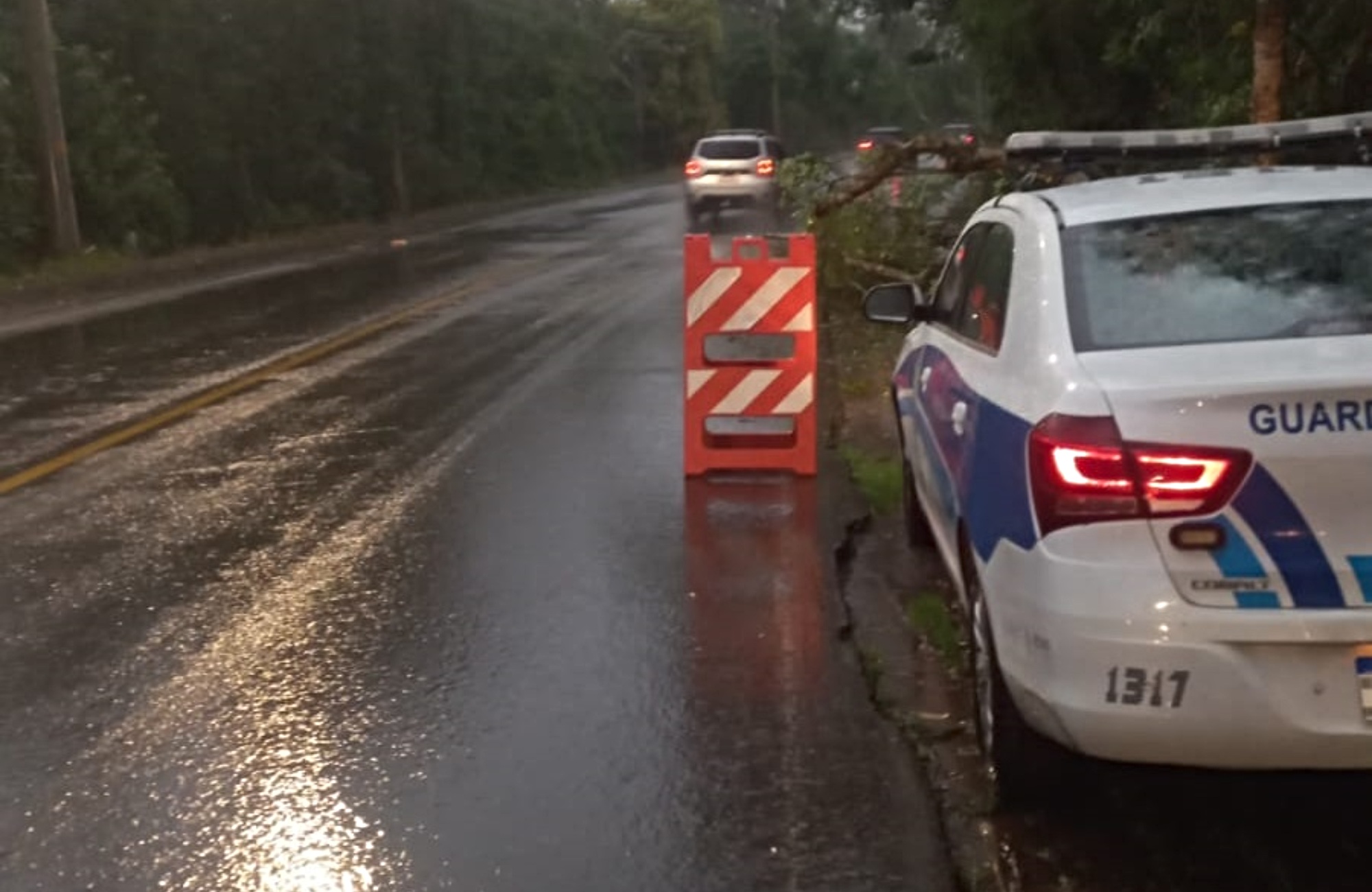 Agentes da Guarda Municipal estiveram no local logo após o ocorrido para realizar a retirada dos galhos e organizar o fluxo de veículos. A corporação reforça que a intervenção possibilitou a liberação da via ainda no início da manhã.