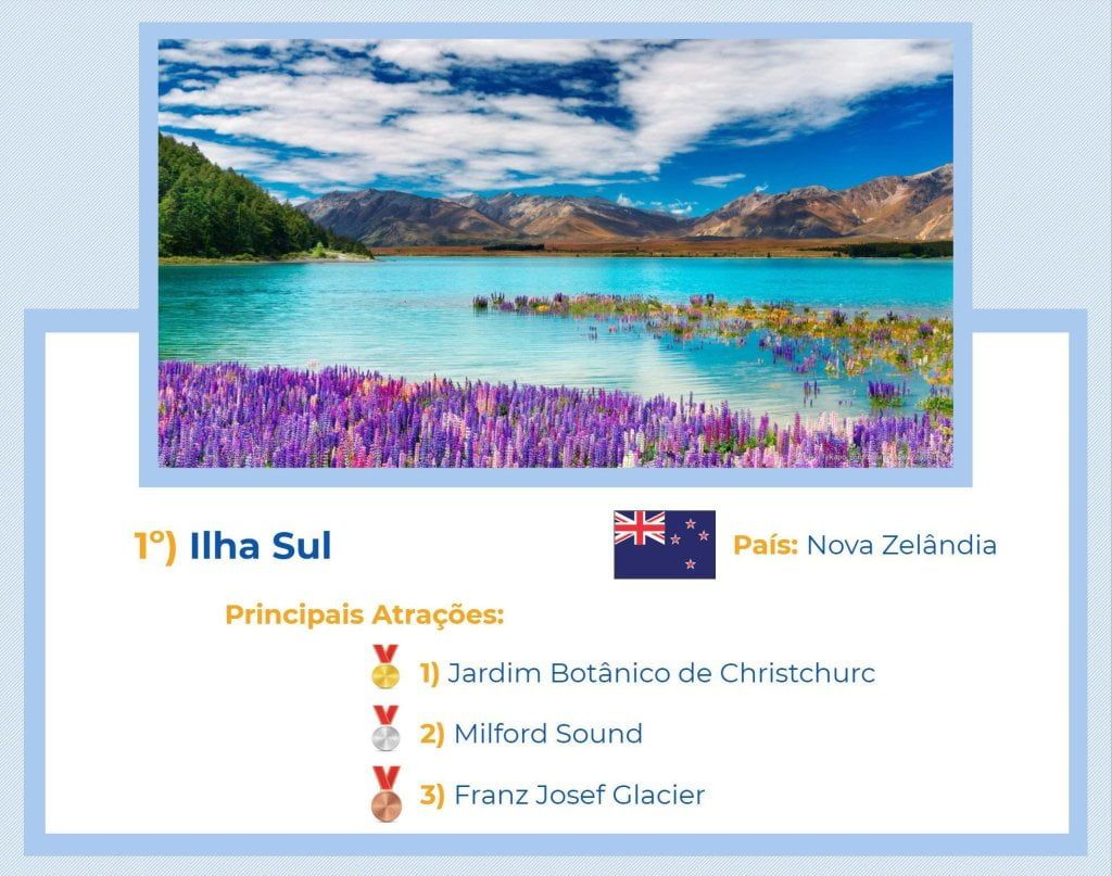 A Ilha Sul da Nova Zelândia está no primeiro lugar do ranking dos melhores lugares do mundo para se visitar.