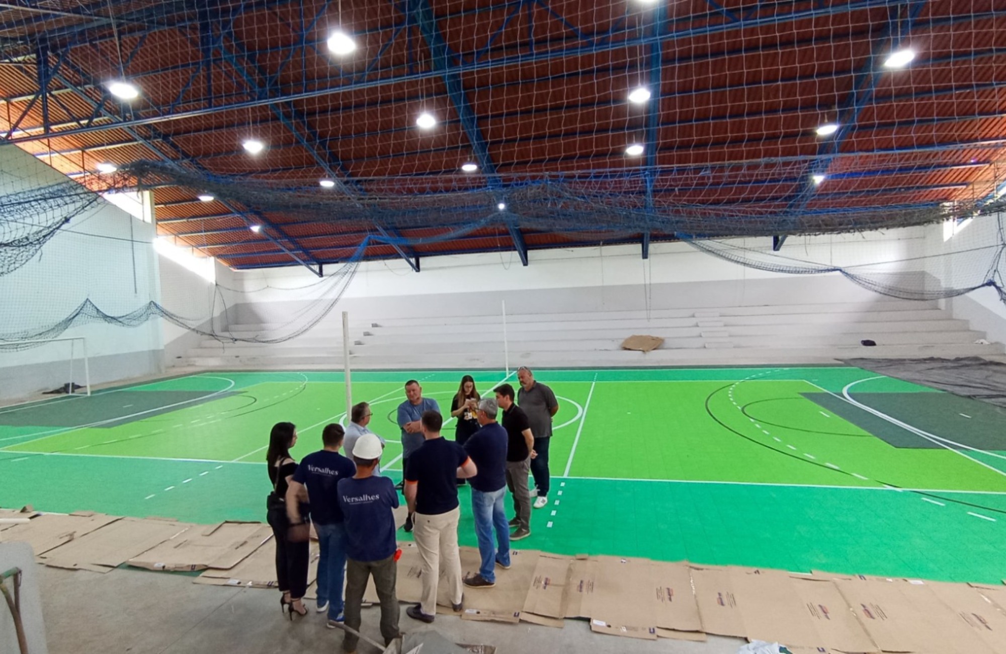 A reforma do Ginásio Esportivo do Parque do Trabalhador, no Bairro Vicentina, em São Leopoldo, está na etapa de conclusão, com os trabalhos voltados para a finalização dos vestiários e instalação das traves esportivas. O espaço já recebeu um novo piso modular na quadra. Nesta segunda-feira (25), o prefeito de São Leopoldo, Ary Vanazzi (PT), esteve no local para acompanhar o andamento das obras.