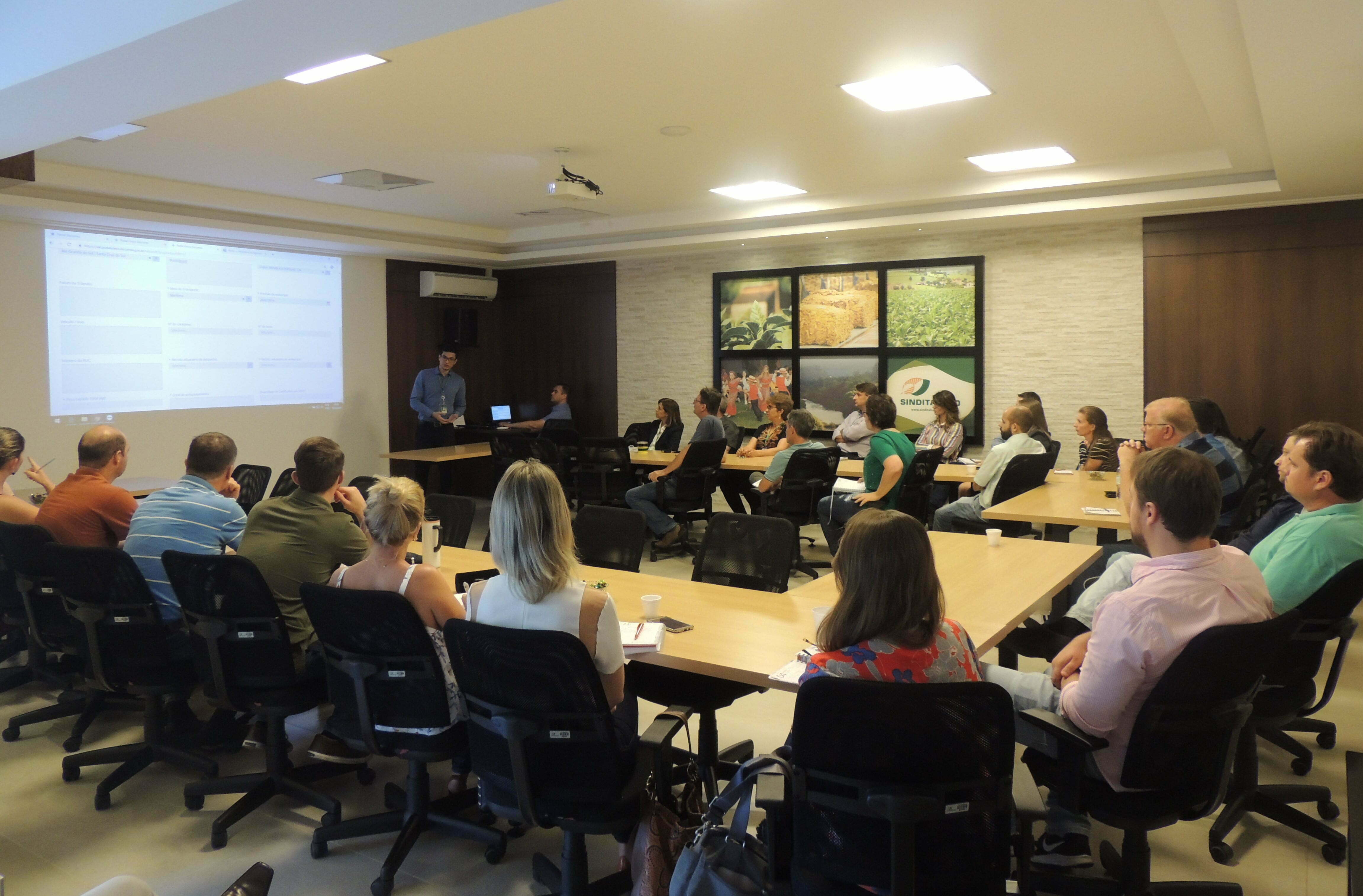 Estiveram presentes os auditores fiscais federais agropecuários Francisco Sadi Santos Pontes, chefe de Serviço do Vigiagro, de Brasília; Rafael Caprioli Martins e Lucia Leão, da 7ª Região do Vigiagro (abrangência Rio Grande do Sul); e Alan Cristiano Erig e Carlos Eduardo Wollmann da Unidade Técnica Regional de Agricultura, Pecuária e Abastecimento (Utra) em Santa Cruz do Sul. Eles falaram para representantes das indústrias de tabaco e para despachantes aduaneiros sobre o uso do Portal Único Siscomex e aspectos importantes da emissão dos certificados fitossanitários.