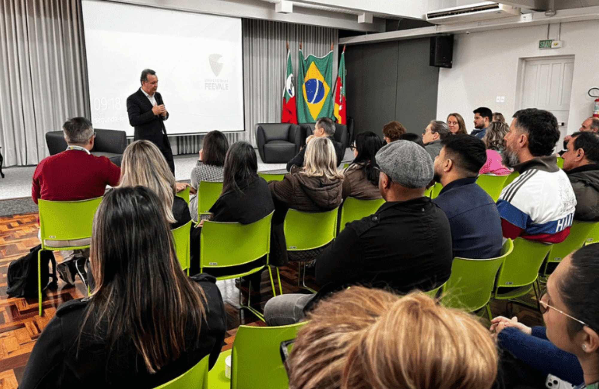 A semana começou com boas notícias no Câmpus I da Universidade Feevale. O reitor da Instituição, José Paulo da Rosa, juntamente com pró-reitores, professores e diretora da Escola de Aplicação Feevale, Janaína Regra, acompanhou a entrega do Salão de Atos, reformado e marcado pela inovação e pela tecnologia.