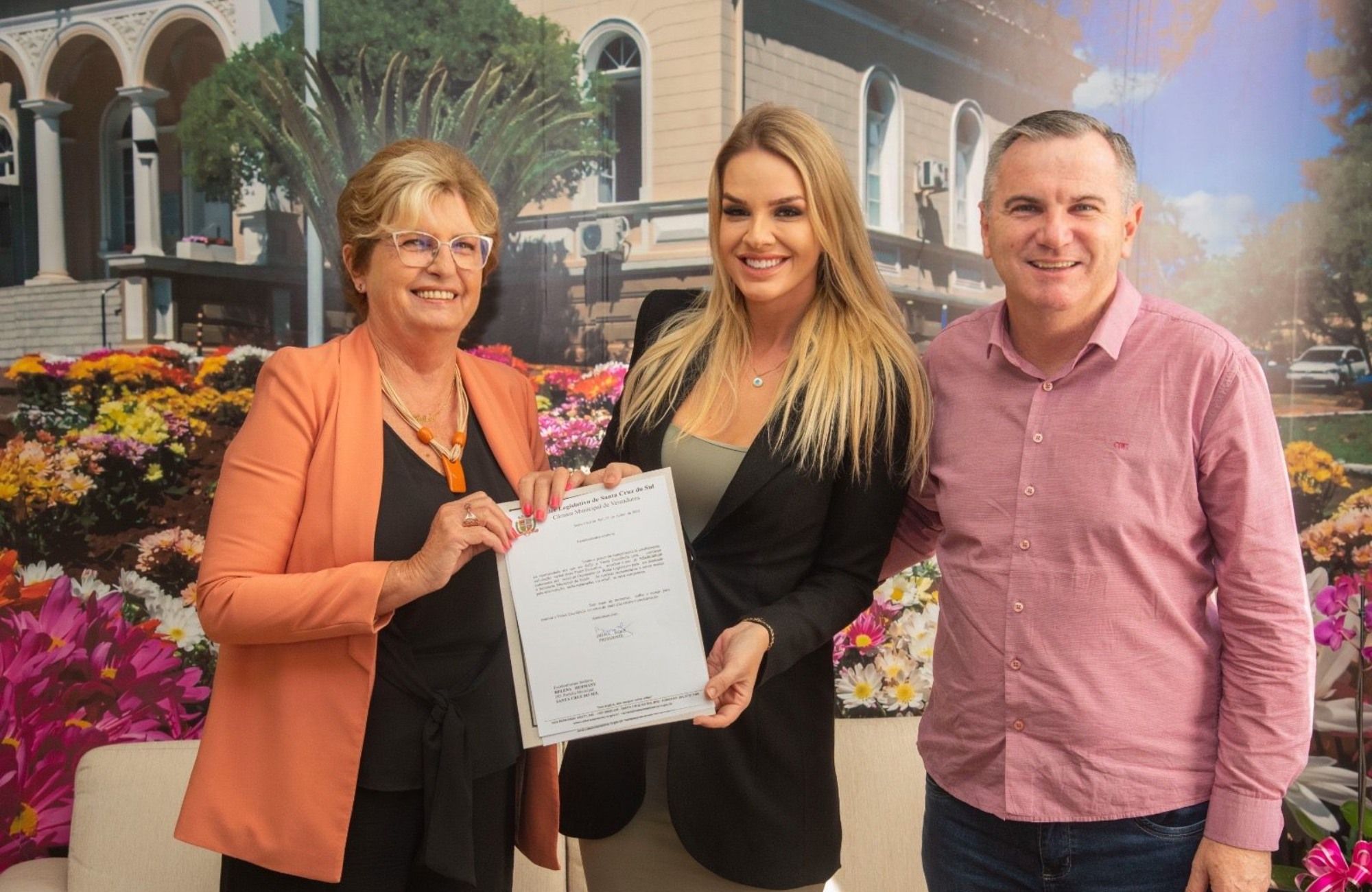 A prefeita de Santa Cruz do Sul, Helena Hermany, recebeu com alegria a notícia de que a Câmara de Vereadores destinou repasse de R$ 800 mil para a Secretaria Municipal da Saúde. Participaram da entrega do ofício no Palacinho, na manhã da terça-feira, 27, o vice-prefeito e secretário municipal da área, Elstor Desbessell, e a presidente da Câmara, Bruna Molz.