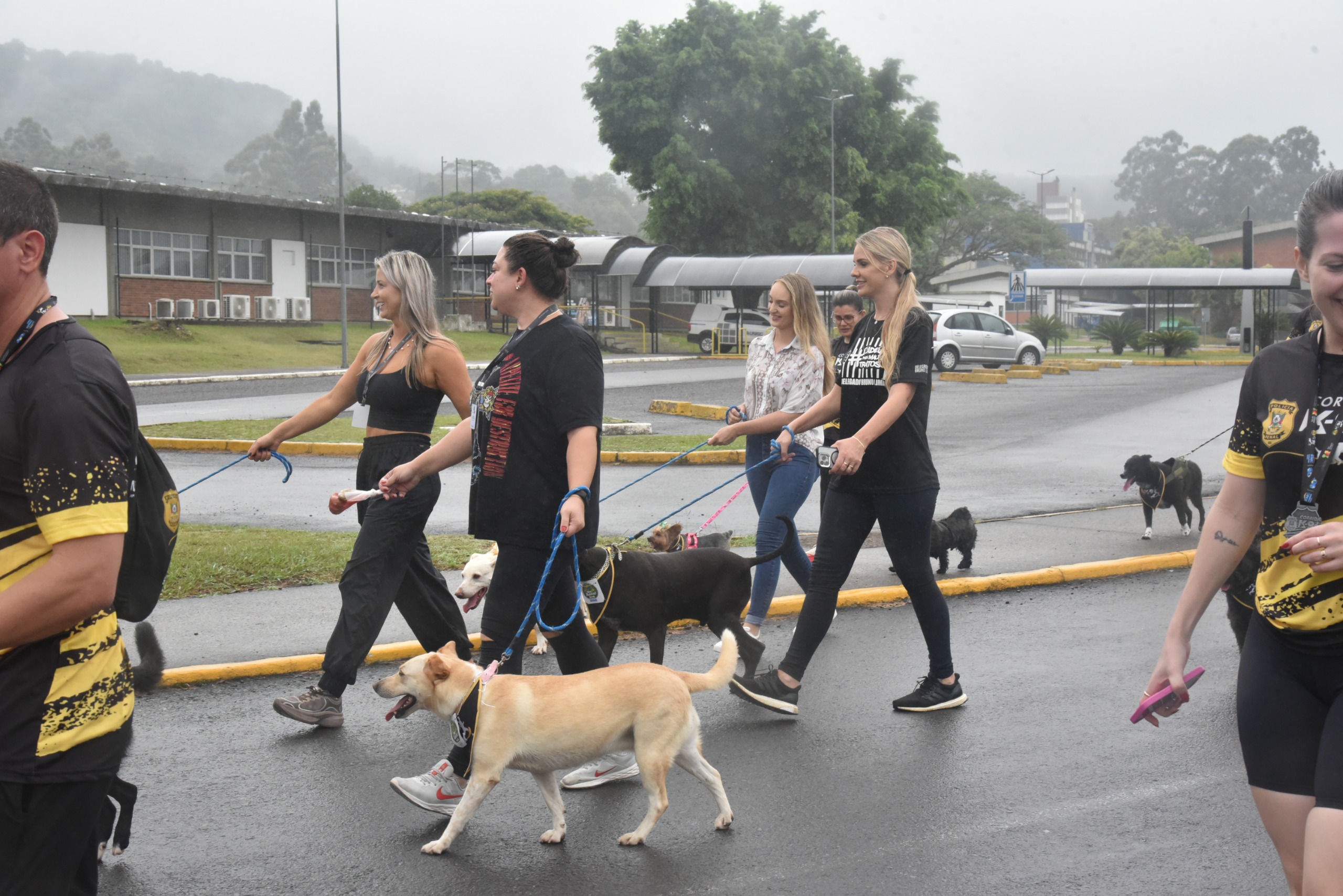 Dez cães do CBEA participaram da caminhada, realizada pela manhã, mesmo com chuva. A presença dos animais buscou dar visibilidade aos que estão disponíveis para adoção. Segundo a secretária municipal de Bem-Estar Animal, Bruna Molz, a iniciativa foi viabilizada a partir de uma parceria. “São justamente os animais que a gente tem mais dificuldade de conseguir adoção”, ressaltou Bruna.