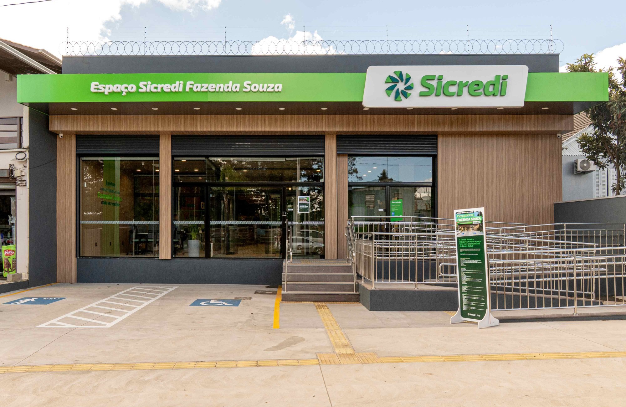 O Espaço Sicredi Fazenda Souza foi concebido como um ambiente multifuncional. Além do atendimento financeiro, a estrutura conta com auditório para 40 pessoas, podendo ser ampliado para até 75 convidados, salas de reunião para pequenos grupos e um espaço de trabalho compartilhado equipado com internet e tomadas.