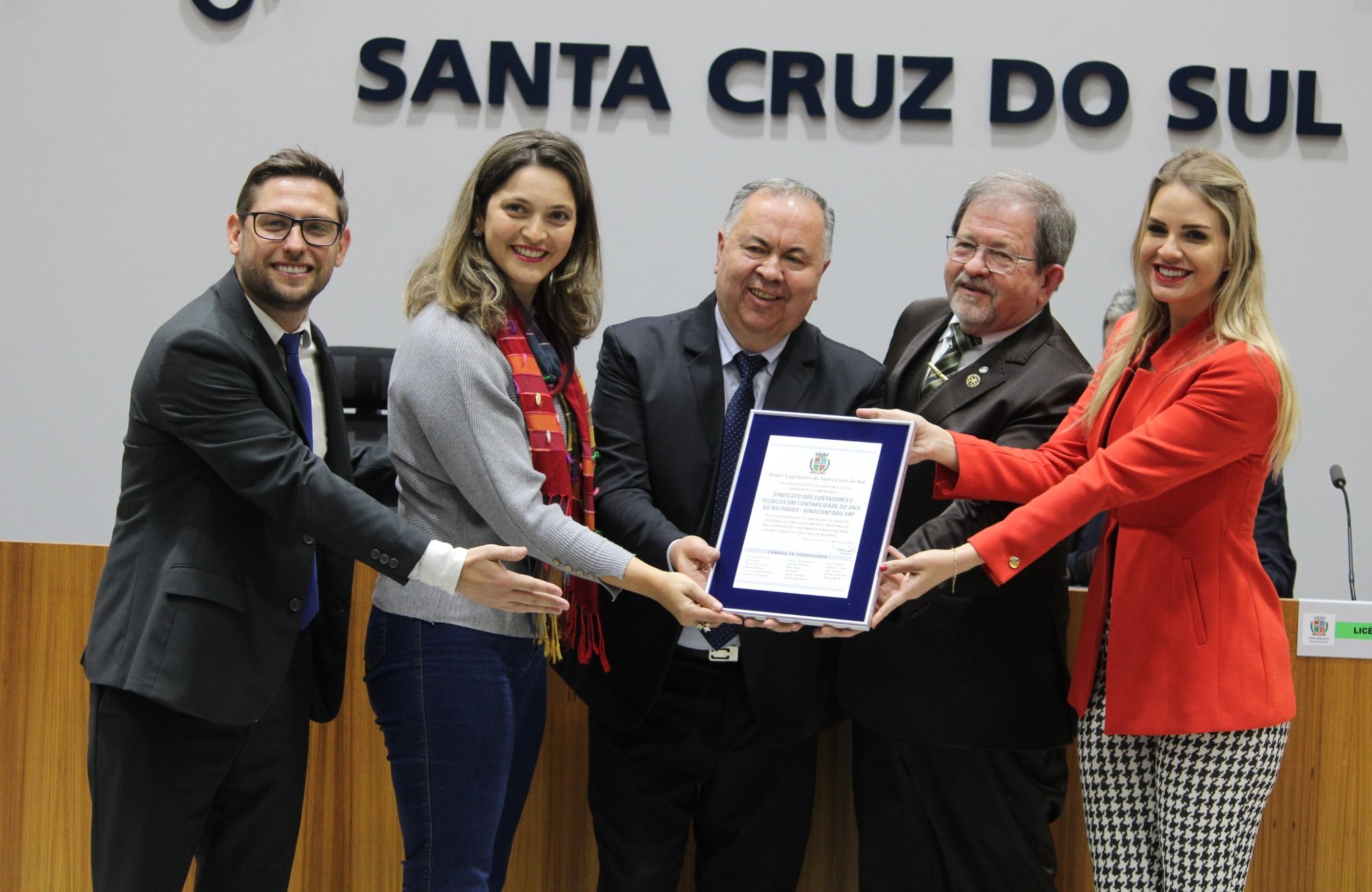 O proponente da homenagem Rodrigo Rabuske destacou a trajetória do sindicato. Fundado em 13 de maio de 1948, o então Sincotec-Varp, atual Sindicontábil, foi a primeira entidade representativa da classe contábil do Vale do Rio Pardo, e, até os dias de hoje, é referência para os profissionais da região, com uma trajetória sólida, representando, atualmente, mais de 2 mil profissionais e 25 municípios do Vale do Rio Pardo e Região Centro-Serra. Desde o início de 2022, o Sindicato é presidido por Ernani Baier, tendo como vice-presidentes Flávia Ines Frohlich Mielke e Norberto Raul Haas.