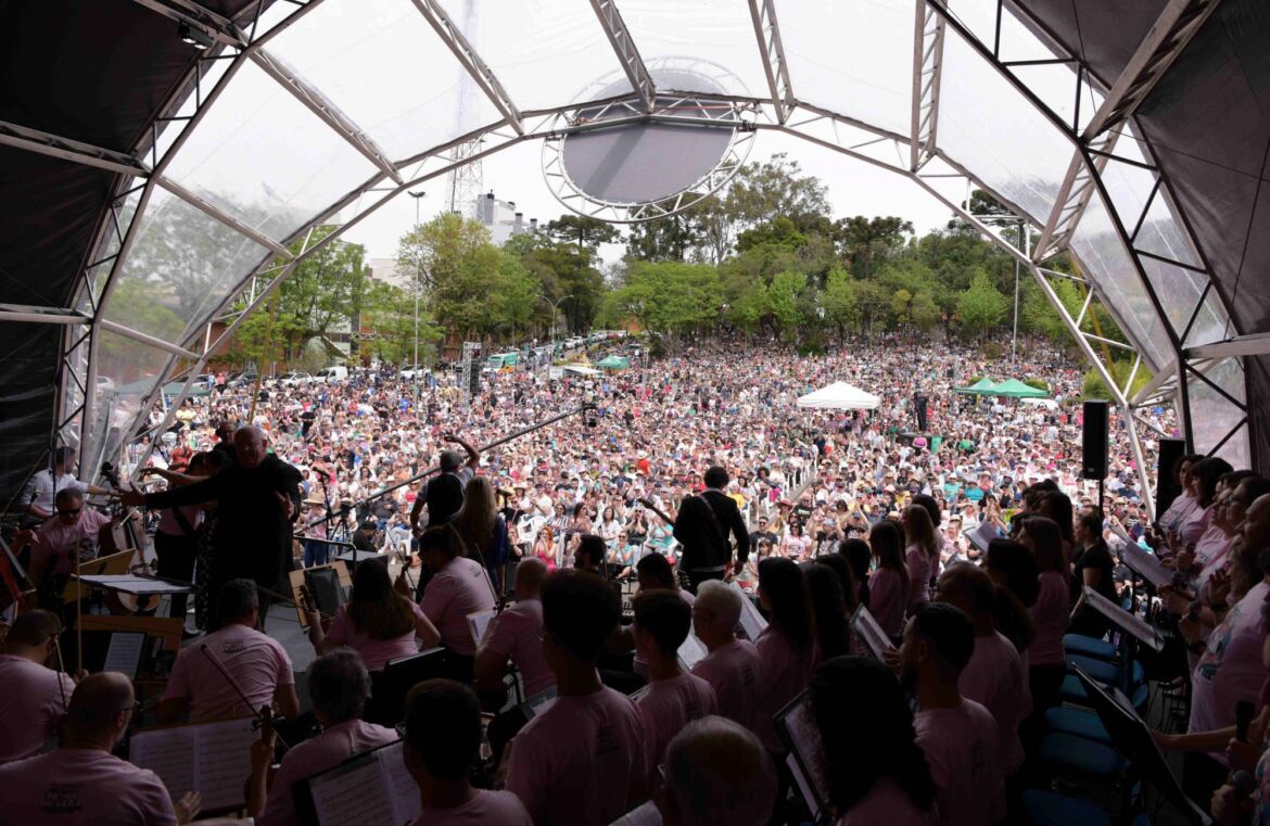 Com o mote “Viva o poder dos clássicos, sinta o rock’n’roll”, o 16º Concerto da Primavera levou um público recorde de mais de 11 mil pessoas ao estacionamento da Universidade de Caxias do Sul (UCS), na manhã deste domingo (22). O evento, realizado em parceria pela Unimed Nordeste-RS e pela UCS, reuniu no palco a UCS Orquestra, regida pelo maestro Manfredo Schmiedt; o Coro Unimed, com regência do maestro Ivan Montanha; e a Lucille Band, que celebra em 2023 seus 30 anos de carreira, como atração especial.