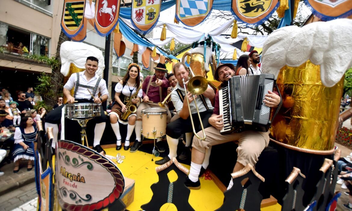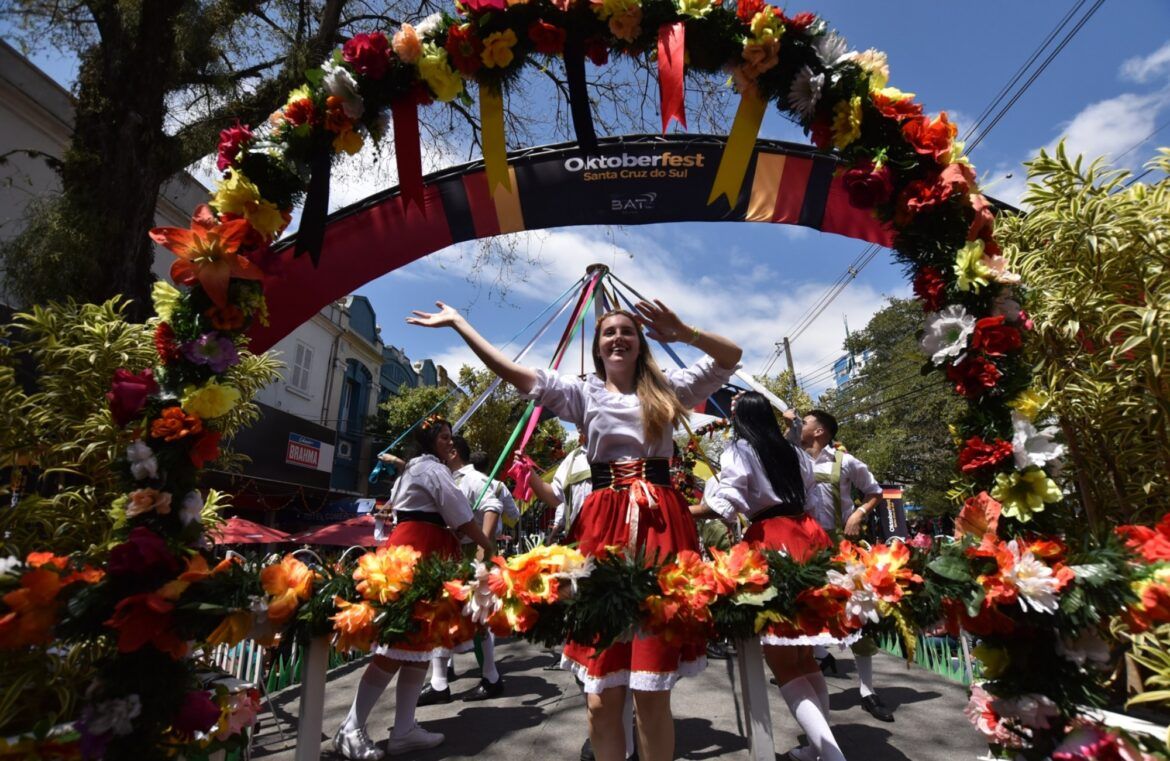 Na manhã deste domingo, 8 de outubro, a partir das 10h30, as quadras da Rua Marechal Floriano serão palco de uma verdadeira aula de cultura e tradição germânica. Inspirado na temática da festa Nossa História, Nosso Futuro, e com desenrolar a partir de nove verbos, o primeiro desfile temático da 38ª Oktoberfest – que inicia na esquina da Rua Ramiro Barcelos e encerra dentro do Parque da Oktoberfest – vai encher de cor e animação a via que é um dos principais cartões postais de Santa Cruz do Sul. Em caso de chuva, o desfile será transferido para a quinta-feira, feriado de 12 de outubro.