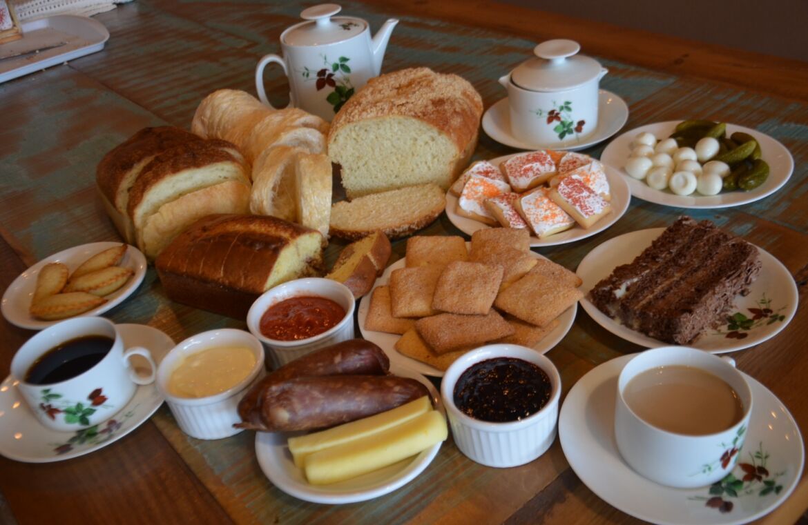 Junto com o café passado na hora, serviam o que produziam em casa, como pães, roscas de polvilho, cucas, queijo, linguiça, nata, requeijão, mel, salsicha bock, rocambole, rabanete e pepino. Era a origem do café colonial conhecido nos dias de hoje e que atrai milhares de turistas a Morro Reuter a cada fim de semana.