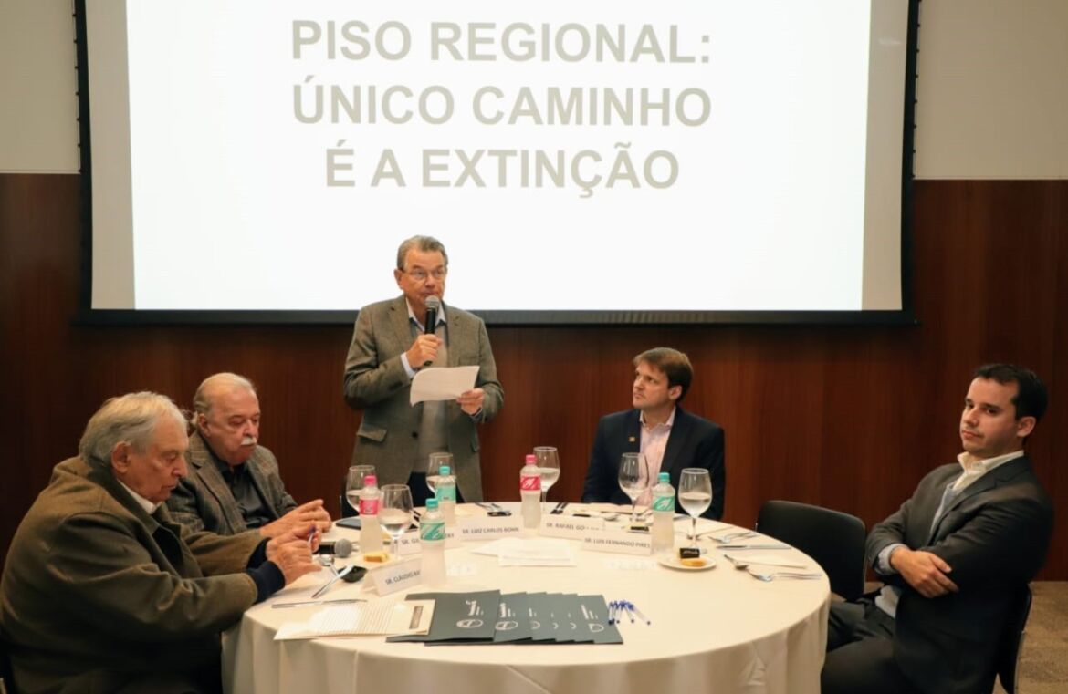 A Casa do Comércio Gaúcho recebeu, nesta quinta-feira (15), um grupo de parlamentares gaúchos para debater o provável reajuste de 9% para o Piso Regional, a ser protocolado pelo Poder Executivo. Na ocasião, representantes das entidades expuseram aos representantes do legislativo os impactos que um possível reajuste no Piso Regional poderia causar na economia do Rio Grande do Sul.