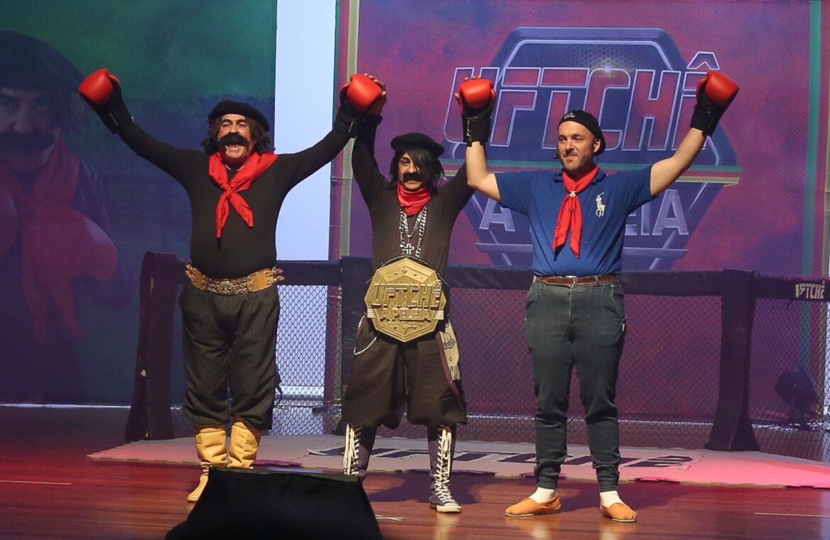 Com mais um embate entre Guri de Uruguaiana (Jair Kobe) e Léo, Gauchão de Apartamento (Dudu Weber), o show de humor ‘UFTchê – A Peleia’ realiza curta temporada no Teatro da Amrigs, em Porto Alegre, de 12 a 14 de abril. O espetáculo tem indicação livre para todos os públicos e já está com ingressos à venda.