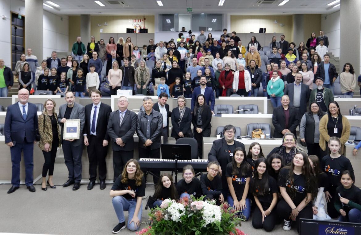 Os 55 anos de trabalho educacional e socioassistencial desenvolvido pela Associação Beneficente Evangélica da Floresta Imperial (Abefi) foram tema de sessão solene da Câmara de Novo Hamburgo na noite desta terça-feira (8). Responsável pelo atendimento diário de mais de 1,5 mil pessoas em sete cidades do estado, a entidade com sede no bairro Industrial foi homenageada por iniciativa do vereador Felipe Kuhn Braun (PP). A cerimônia, abrilhantada por apresentações musicais de corais infantojuvenis ligados à instituição, lotou as cadeiras do Plenário Luiz Oswaldo Bender.