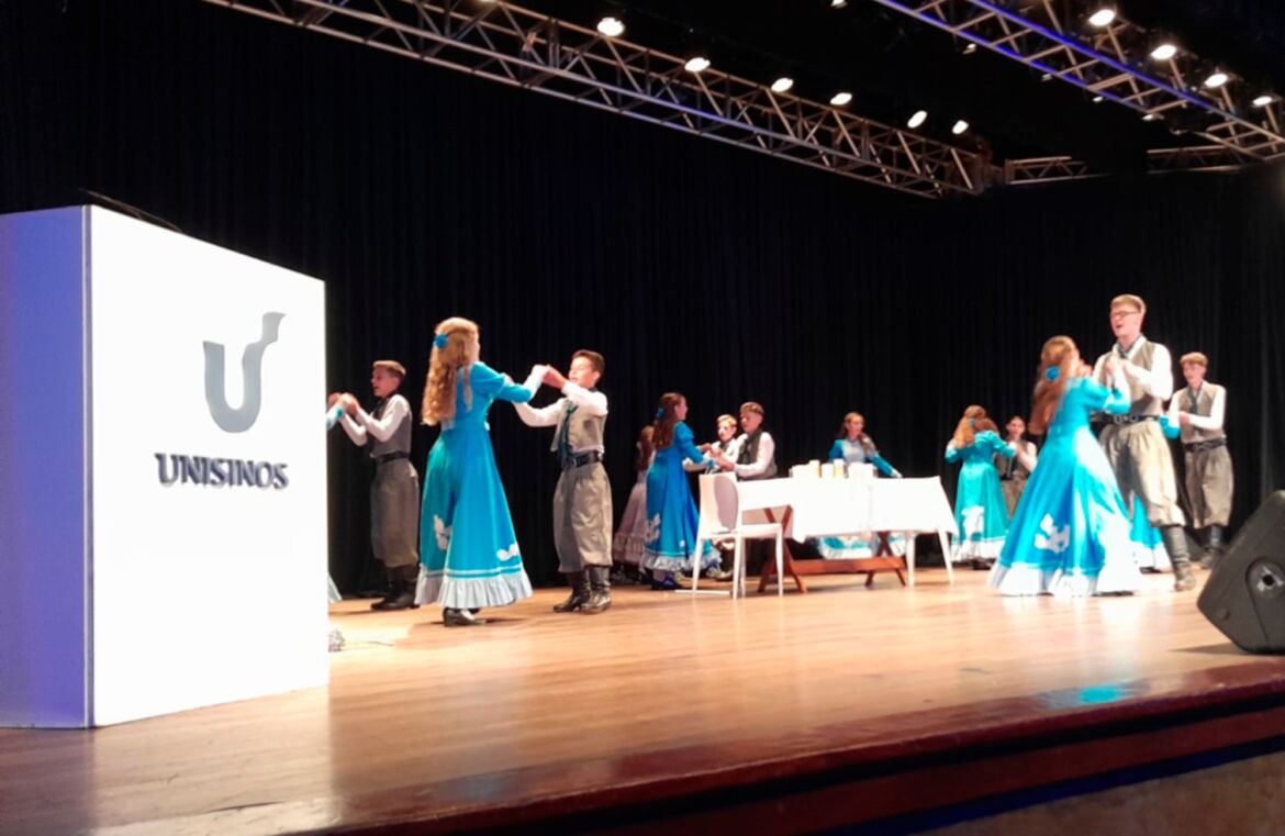 O CTG Garrão da Serra realizou uma apresentação inspirada na arte e cultura de Morro Reuter durante o I Seminário Nacional de Ensino, Formação de Professores e Criação Pedagógica na Educação Básica, que ocorreu na quinta-feira (11), no Anfiteatro Padre Werner, da Unisinos, em São Leopoldo.