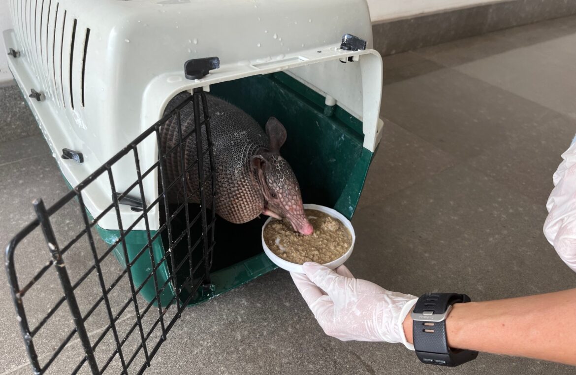 Antes de ser devolvido à natureza o pequeno animal ainda fez uma boa refeição. “Importante ele estar alimentado até se ambientar novamente ao seu habitat, já que passou dez dias sendo alimentado por nós”, explicou a veterinária Tatiana Guerra, que tratou pessoalmente de todo o processo.