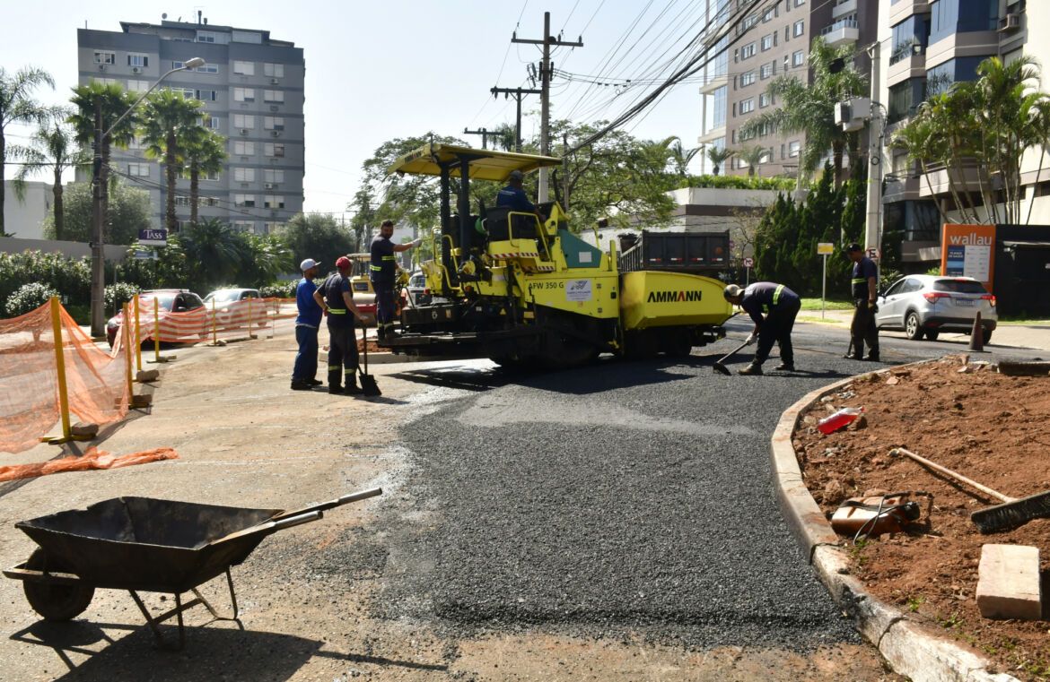 Os últimos dias de tempo seco e sem chuva ajudaram no avanço mais rápido da construção da rótula no encontro da Avenida Dr. Maurício Cardoso com a Rua Joaquim Nabuco, na parte alta da área central. Iniciada no dia 18 de agosto, a obra que tinha a previsão de término em até 60 dias, contando com a mudança inicial do sentido para mão única em vias da região, já está na reta final. No momento, a equipe e as máquinas estão realizando o asfaltamento de todo o quadrante no entorno da rótula, que será todo renovado. Com a revitalização, todas as imperfeições do asfalto atual serão consertadas no trecho. Após o término do asfaltamento, que provavelmente será finalizado na próxima semana, a obra entrará na última fase, que é a implementação da sinalização viária. Bloqueios momentâneos de via poderão ocorrer para a colocação do asfalto. Nesta sexta-feira, dia 26, flores serão plantadas nos novos canteiros.