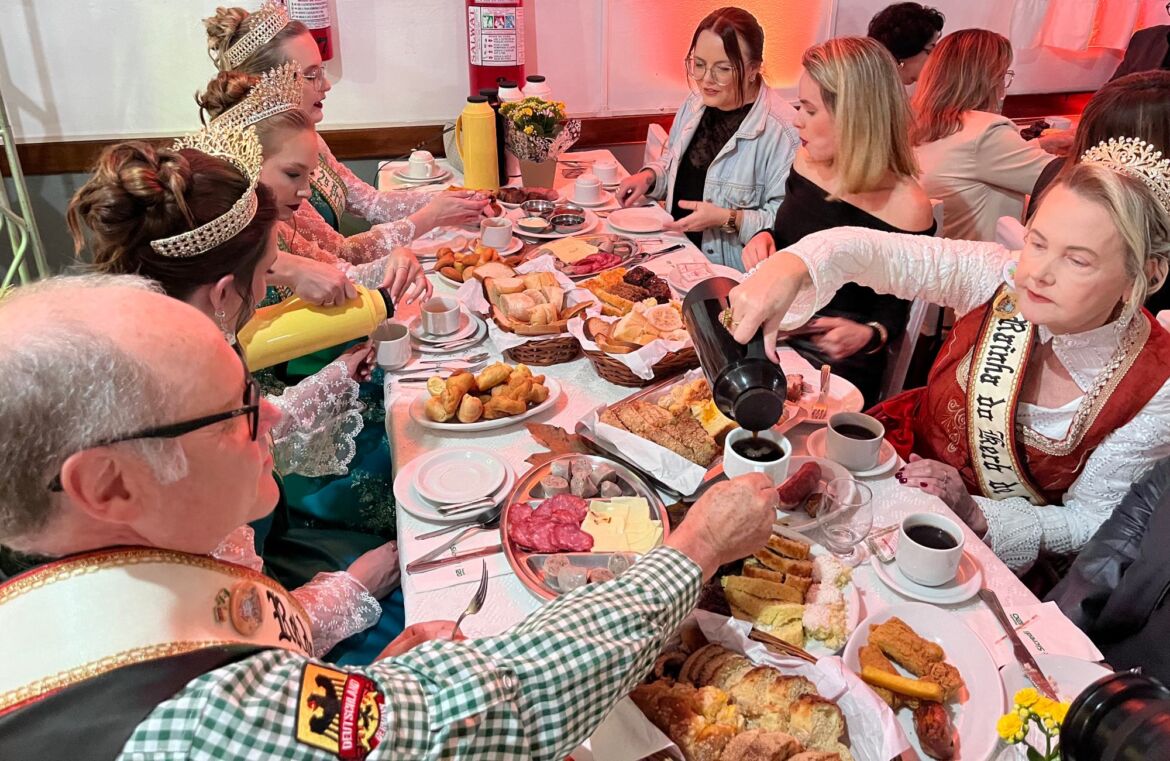 A Prefeitura de Dois Irmãos realizou, nesta sexta-feira (25), o evento “Baumschneis Kolonial Kaffee”, que reuniu mais de 300 pessoas na Sociedade Atiradores para celebrar a tradição local do café colonial. A atividade foi acompanhada de apresentações folclóricas e música ao vivo, além de ter integrado a campanha “Julho, mês do café colonial”, organizada pela Secretaria de Turismo e Cultura do município para valorizar a herança cultural local.