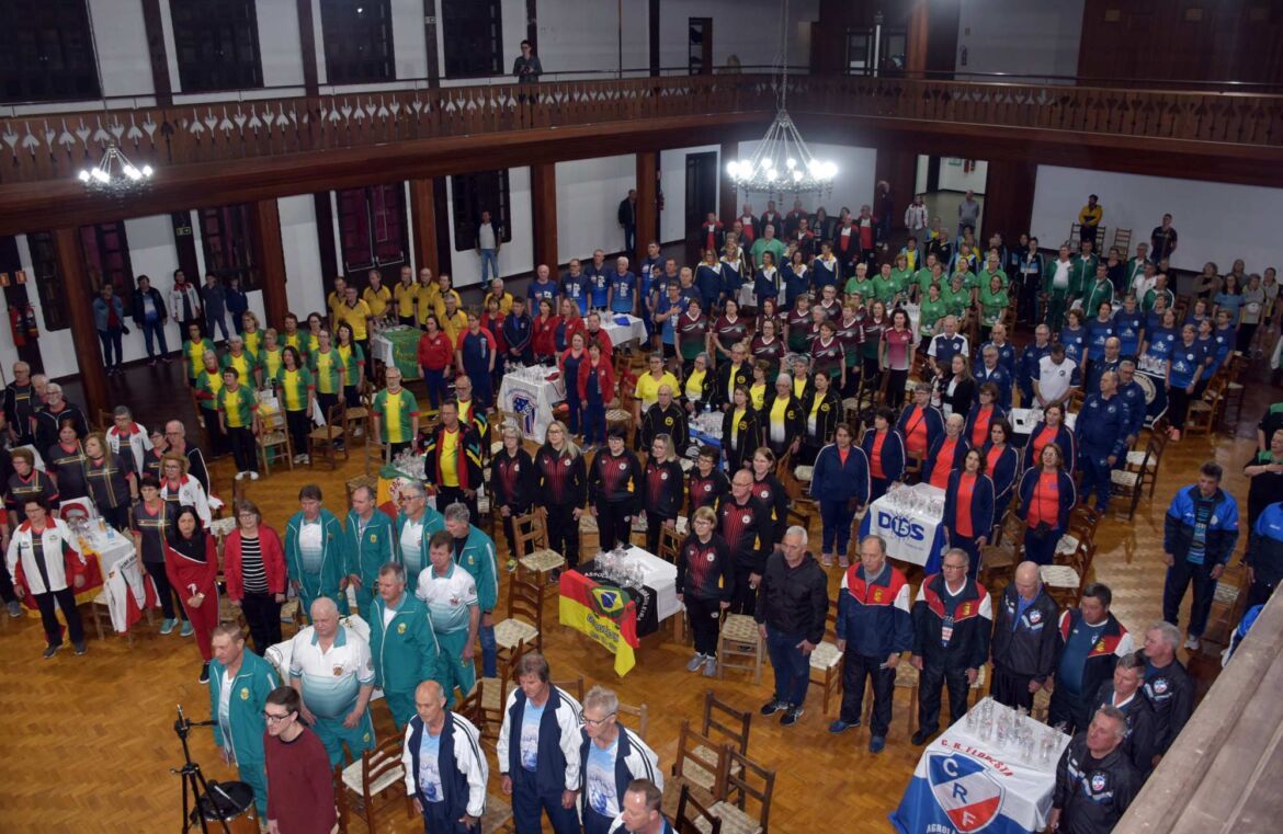 Trinta equipes, do Rio Grande do Sul, Santa Catarina e Paraná, estão em Nova Petrópolis para a disputa do Campeonato Brasileiro de Bolão da Melhor Idade. A competição foi aberta na noite da última quinta-feira, 25, e segue até domingo, 28. Os jogos femininos ocorrem nas canchas da Sociedade Cultural Recreativa Tiro ao Alvo, no Centro. Já as equipes masculinas jogam na Associação Esportiva Cultural Recreativa Juvenil, de Linha Temerária.