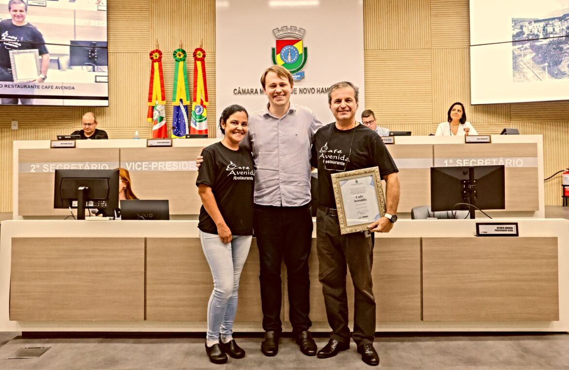 A Câmara de Vereadores de Novo Hamburgo homenageou os 95 anos do Café Avenida, tradicional ponto de encontro da cidade, nesta quarta-feira (8). A iniciativa foi proposta pelo vereador Felipe Kuhn Braun (PSDB) e aprovada por unanimidade por seus colegas.