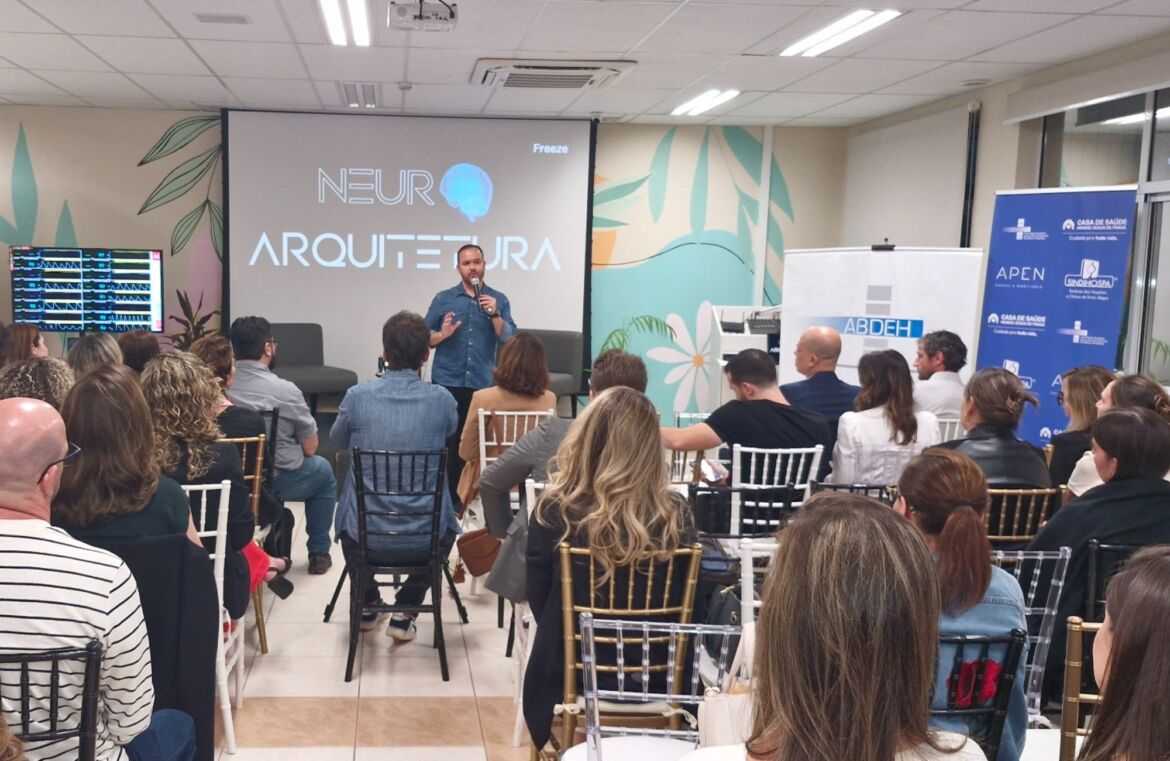 O arquiteto Gustavo Seferin apresentou reflexões sobre ambientes voltados ao bem-estar no projeto “Casa do Futuro”. A arquiteta Bia Rafaelli, que atua com design biofílico, discutiu o uso de elementos naturais para redução do estresse e promoção de saúde integral.