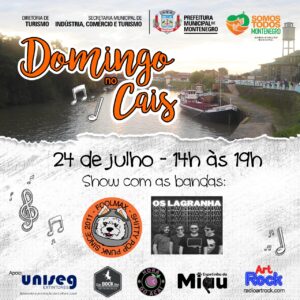 Música, gastronomia e lazer. A próxima edição do projeto Domingo no Cais de Montenegro acontecerá no dia 24 de julho, das 14h às 19h, no Porto das Laranjeiras.