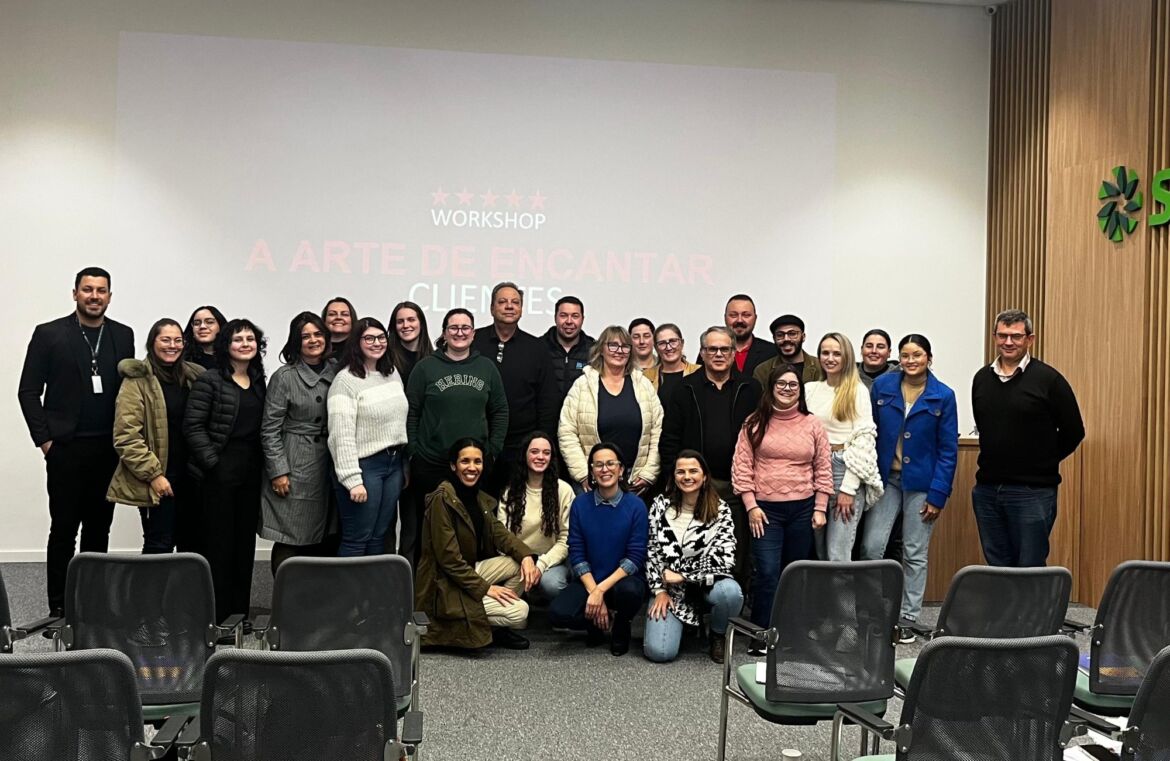 Mais de 40 empresários e profissionais participaram do workshop A Arte de Encantar Clientes, realizado no Espaço Sicredi Nova Petrópolis na noite desta terça-feira (8). O evento foi promovido pela Secretaria Municipal de Indústria, Comércio, Serviços e Tecnologia, em parceria com o Serviço Brasileiro de Apoio às Micro e Pequenas Empresas (Sebrae/RS).