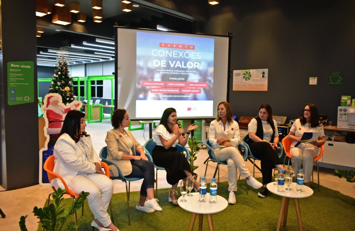 O painel principal contou com as embaixadoras da CDL Mulher, Raquel da Cruz, Joice Koelzer e Cris Casagrande, que também atuou como mediadora, além da diretora Raquel Tomm. As participantes conduziram uma conversa sobre temas como atendimento, encantamento do cliente, marketing, inovação e longevidade empresarial.