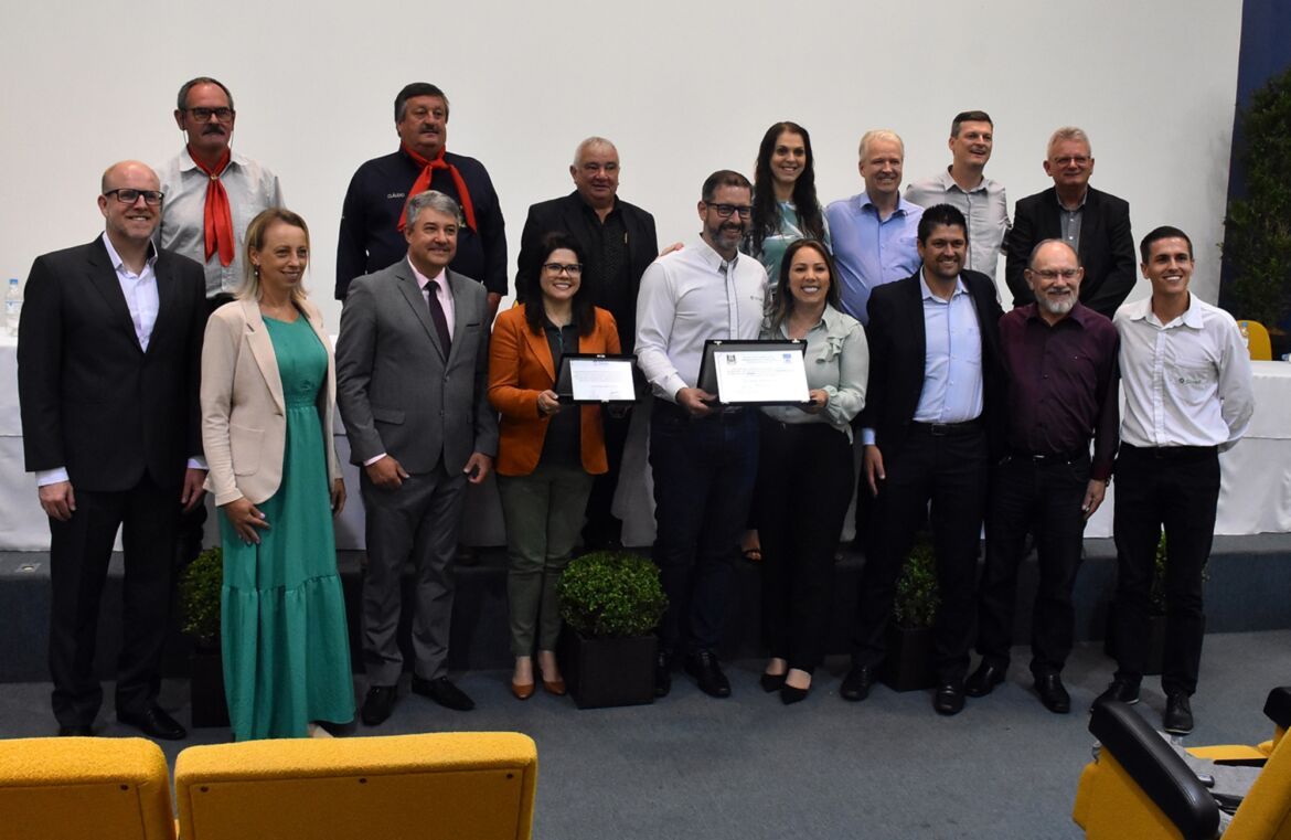 A Prefeitura e o Poder Legislativo de Nova Petrópolis realizaram uma sessão solene, na noite de quarta-feira (21), no plenarinho da Acinp, para prestar homenagem ao aniversário de 120 anos da cooperativa Sicredi Pioneira. O prefeito Jorge Darlei Wolf, o vice-prefeito Martim Wissmann e o presidente da Câmara, vereador Alexandre da Silva, fizeram a entrega de placas comemorativas aos representantes da primeira cooperativa de crédito da América Latina, fundada em 28 de dezembro de 1902.