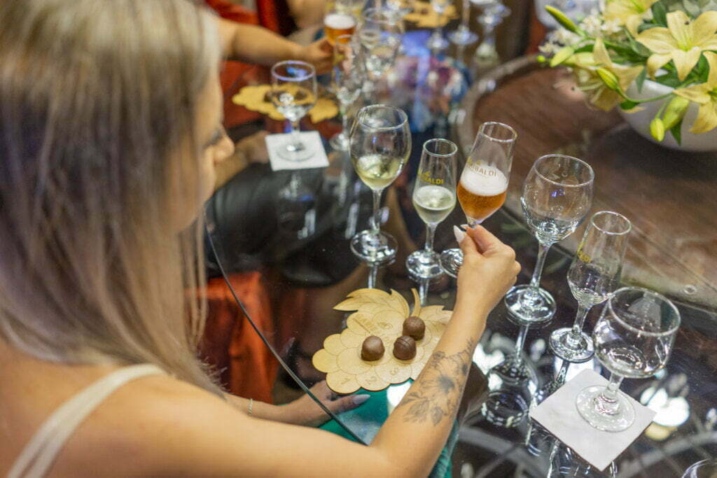 Trufas de chocolate e espumantes são deliciosos mesmo sozinhos. Quando unidos, a explosão de sabores é garantida. É exatamente essa sensação única, somente possível com combinações perfeitas, que a atividade Taça & Trufa promove, nas caves da cooperativa. O visitante é posto a conversar com espumantes, vinhos e trufas artesanais exclusivas. São cinco harmonizações surpreendentes, desenvolvidas através de muito estudo, guiadas por um especialista. Primeiramente, o turista passeia por todo o Complexo Enoturístico e aprende mais sobre a cultura do espumante e as particularidades do trabalho da cooperativa, premiada Brasil afora. Depois, segue para as caves onde senta, relaxa e saboreia esse universo de sabores criado pela fusão de chocolates e vinhos. A degustação também está disponível na versão Taça & Trufa Kids, para o público infanto-juvenil, de até 15 anos, com produtos não alcoólicos. Aos pequenos com até quatro anos, a harmonização com o chocolate é feita através de sucos.