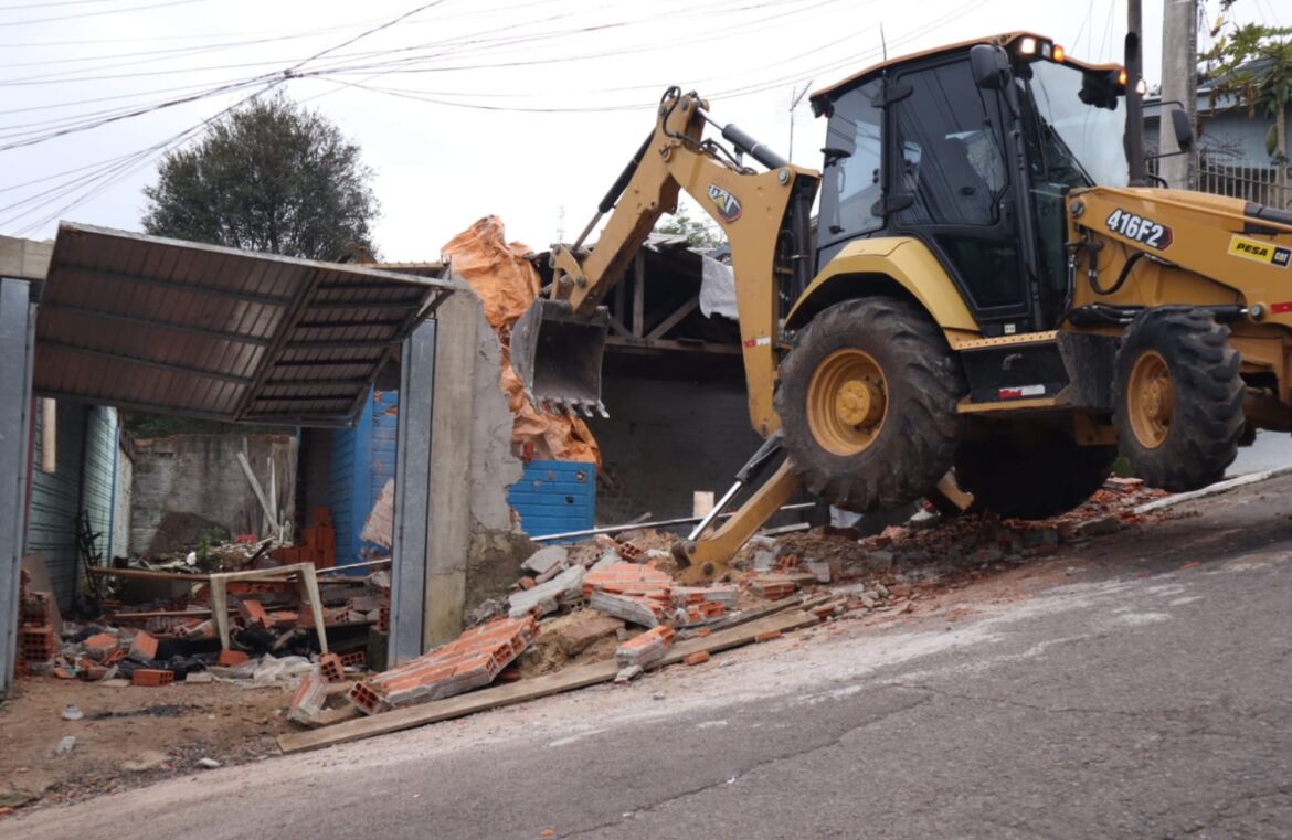 Pelo menos dez residências foram demolidas na manhã desta sexta-feira (10) na Avenida Nações Unidas, no bairro Santo Afonso, em Novo Hamburgo. A ação, conduzida pela Secretaria Municipal de Obras Públicas e Infraestrutura (Smopi), faz parte de uma nova etapa das intervenções de reforço no dique que protege a população das cheias do Rio dos Sinos e do Arroio Luiz Rau. De acordo com a Prefeitura, as remoções foram necessárias para permitir o avanço das obras, que já alcançaram 65% de execução.