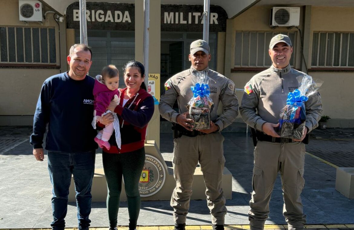 A Brigada Militar atendeu a ocorrência no momento do engasgamento, realizando os procedimentos necessários para salvar a criança. No reencontro, os familiares puderam expressar seu agradecimento aos agentes envolvidos.