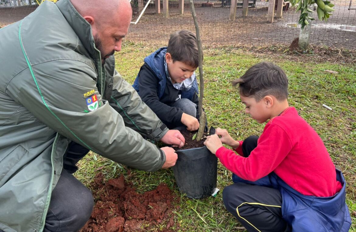 Estudantes da Escola Municipal de Ensino Fundamental Presidente Kennedy realizaram na manhã desta quarta-feira (4) o plantio de um pomar como parte das atividades da Semana Municipal do Meio Ambiente, promovida pela Prefeitura de Estância Velha, por meio da Secretaria Municipal de Meio Ambiente, Pecuária e Agricultura (Semapa). A ação, que ocorre entre os dias 2 e 6 de junho, tem como tema uma cidade sustentável e envolve todas as escolas do município.