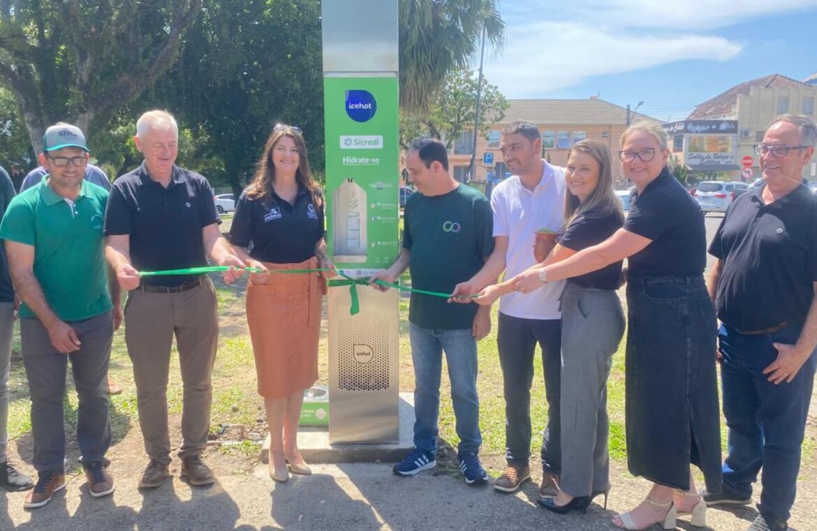 Uma estação pública de hidratação foi inaugurada pela Sicredi Vale do Rio Pardo, na manhã desta sexta-feira (14), na Travessa São Sebastião Mártir, em Venâncio Aires. De acordo com a cooperativa, a estrutura foi instalada com o objetivo de ampliar o acesso da comunidade à água potável e reforçar o compromisso da instituição com o bem-estar urbano. O equipamento oferece água gelada e quente, suporte para animais e um aspersor refrescante.