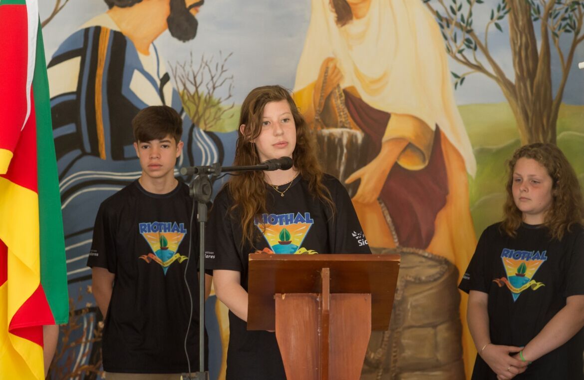 A Sicredi Vale do Rio Pardo, com apoio do poder público, incentiva a criação de cooperativas escolares junto às escolas desde 2016, por meio do Programa Cooperativas Escolares. “Somos representantes de uma cooperativa, um movimento cooperativista que acredita na educação. Se queremos um Brasil melhor, precisamos desenvolver pessoas. A cooperação que faz a comunidade desenvolver e prosperar”, salientou Petry. O líder cooperativista ainda entregou uma placa de fundação para os alunos da Cooperativa Escolar Riothal, que representa a 10ª da base de atuação da instituição e 3ª fundada em Santa Cruz do Sul.
