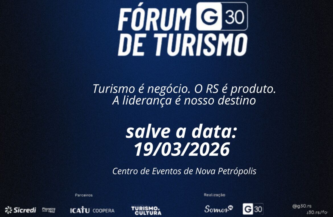 Nova Petrópolis sediará o Fórum G30 de Turismo no Centro de Eventos da cidade no dia 19 de março. A atividade reunirá cerca de 600 participantes entre gestores públicos, lideranças do trade turístico, empresários e profissionais do setor, com o objetivo de debater estratégias e construir soluções para o desenvolvimento do turismo no Rio Grande do Sul.
